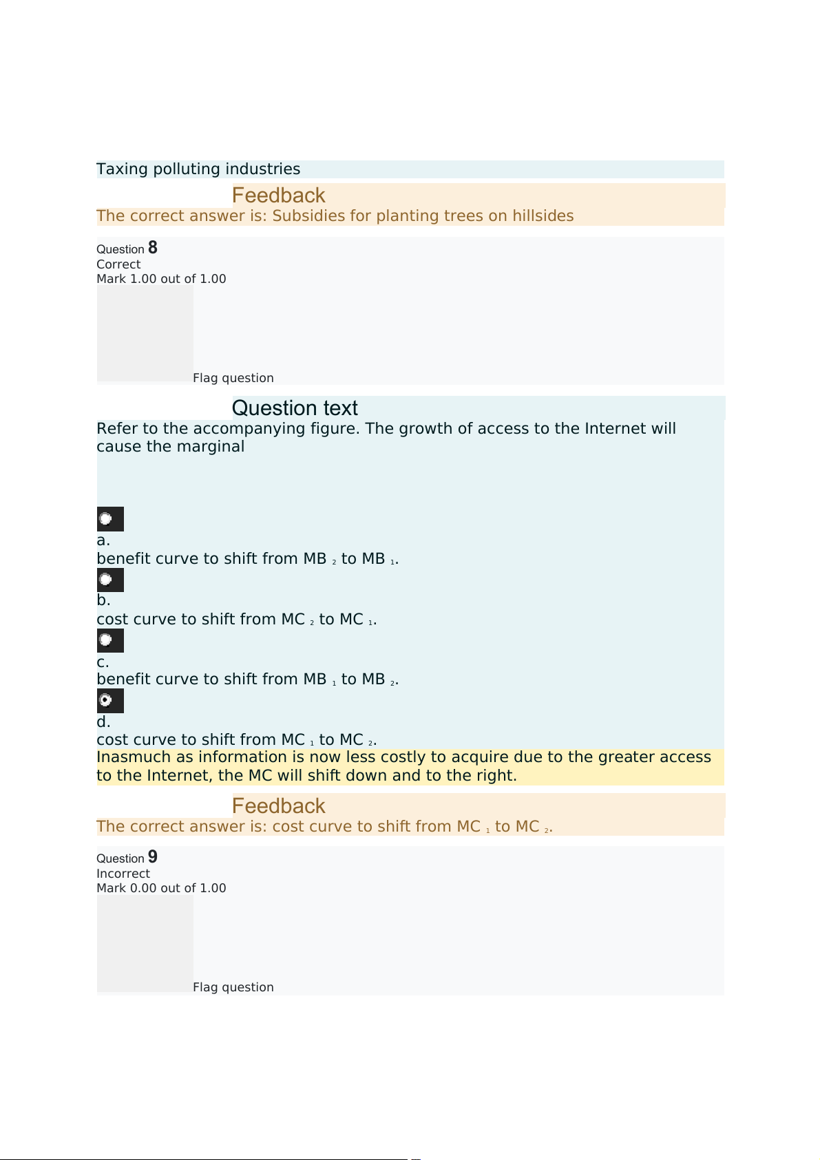The correct answer is: Subsidies for planting trees on hillsides Question 8 Correct Mark 1.00 out of 1.00 Flag question Question text