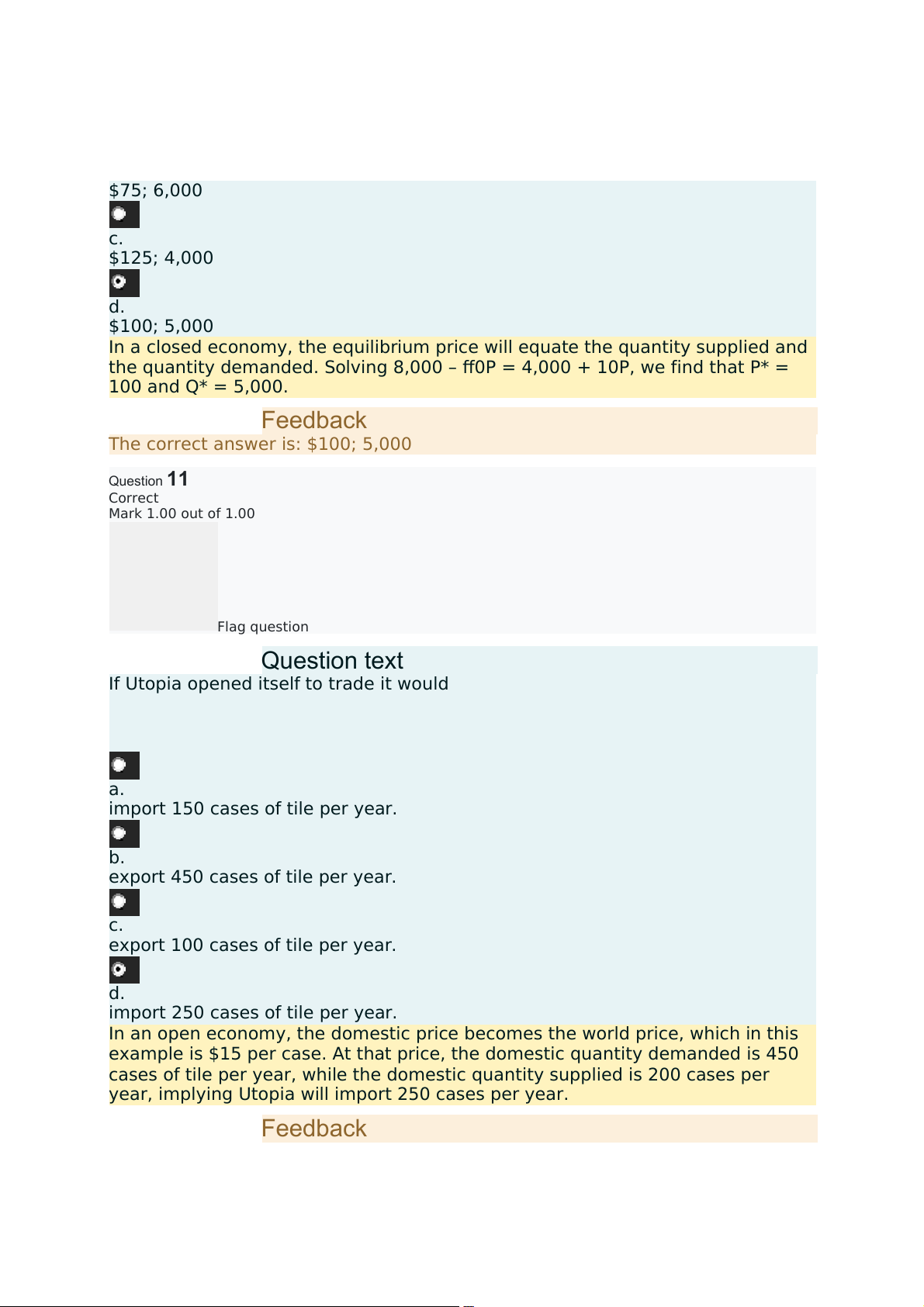The correct answer is: import 250 cases of tile per year. Question 12 Incorrect Mark 0.00 out of 1.00 Flag question Question text
