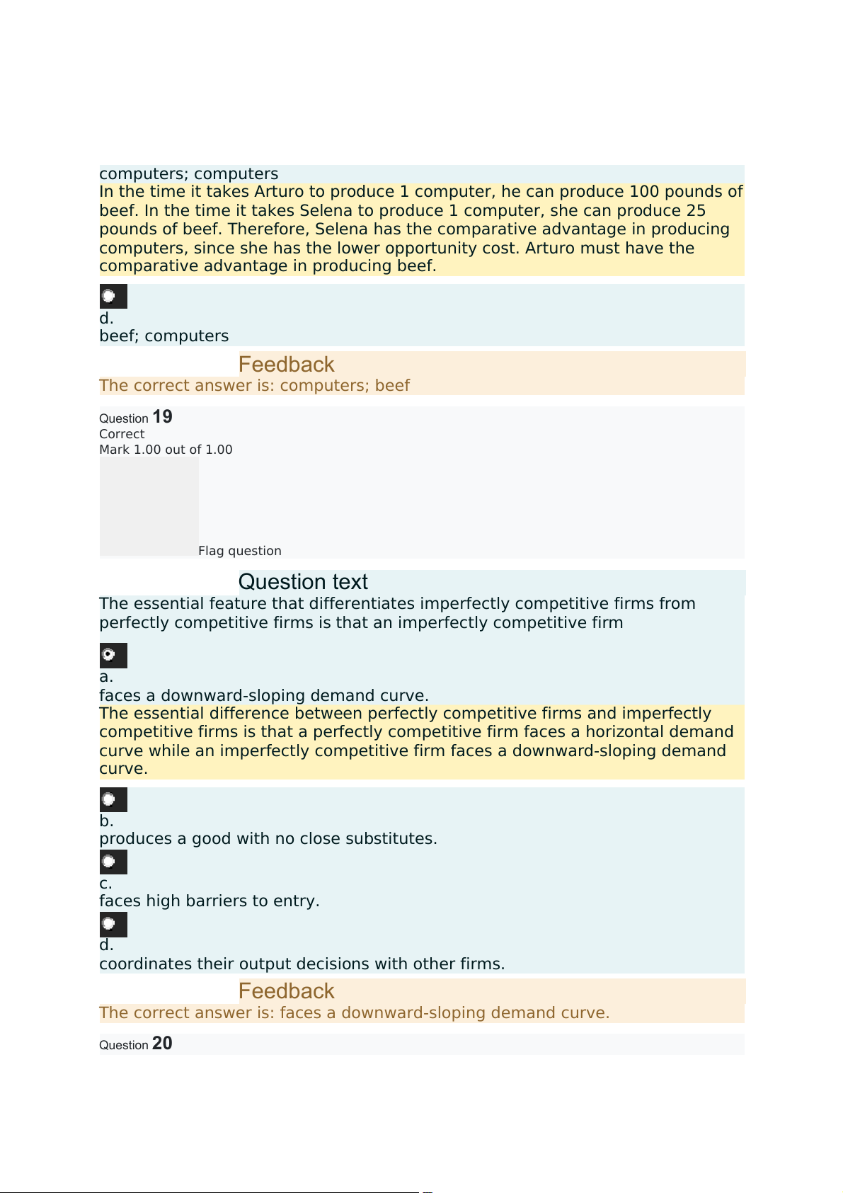 The correct answer is: computers; beef Question 19 Correct Mark 1.00 out of 1.00 Flag question Question text
