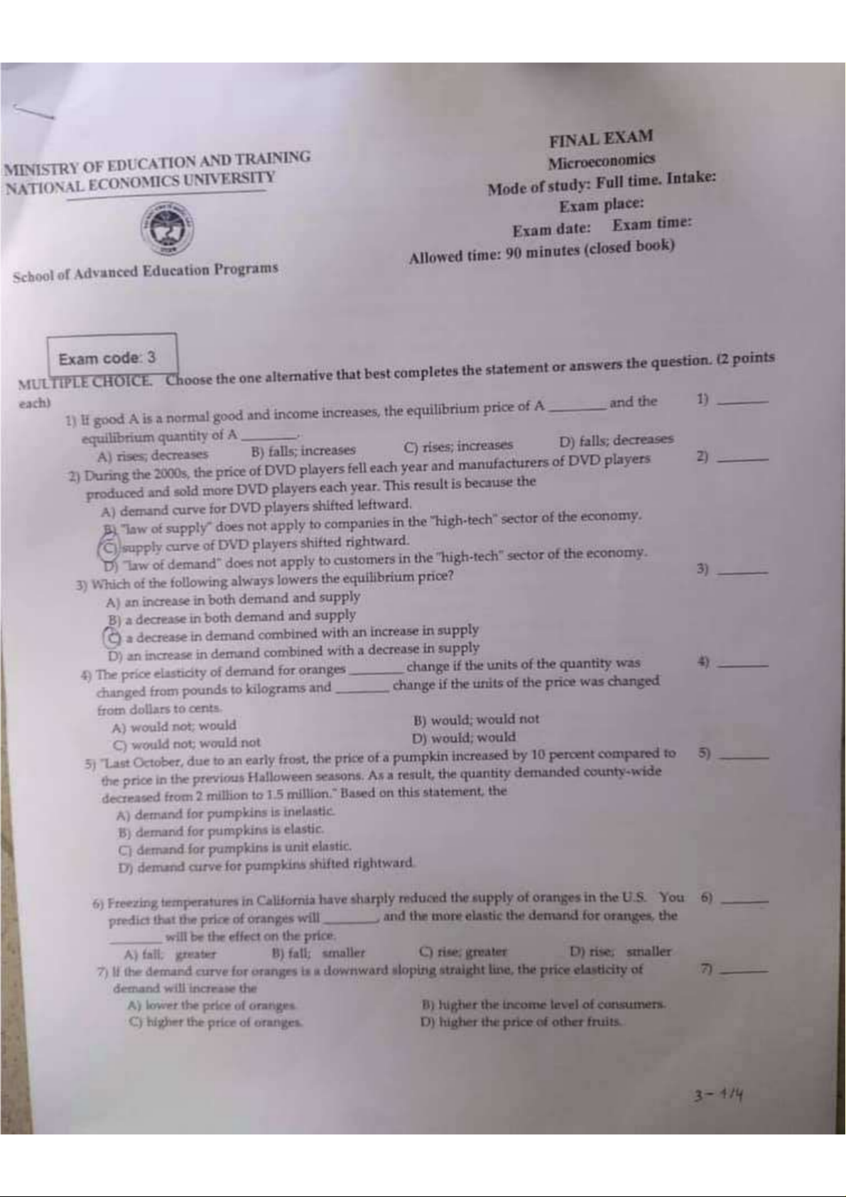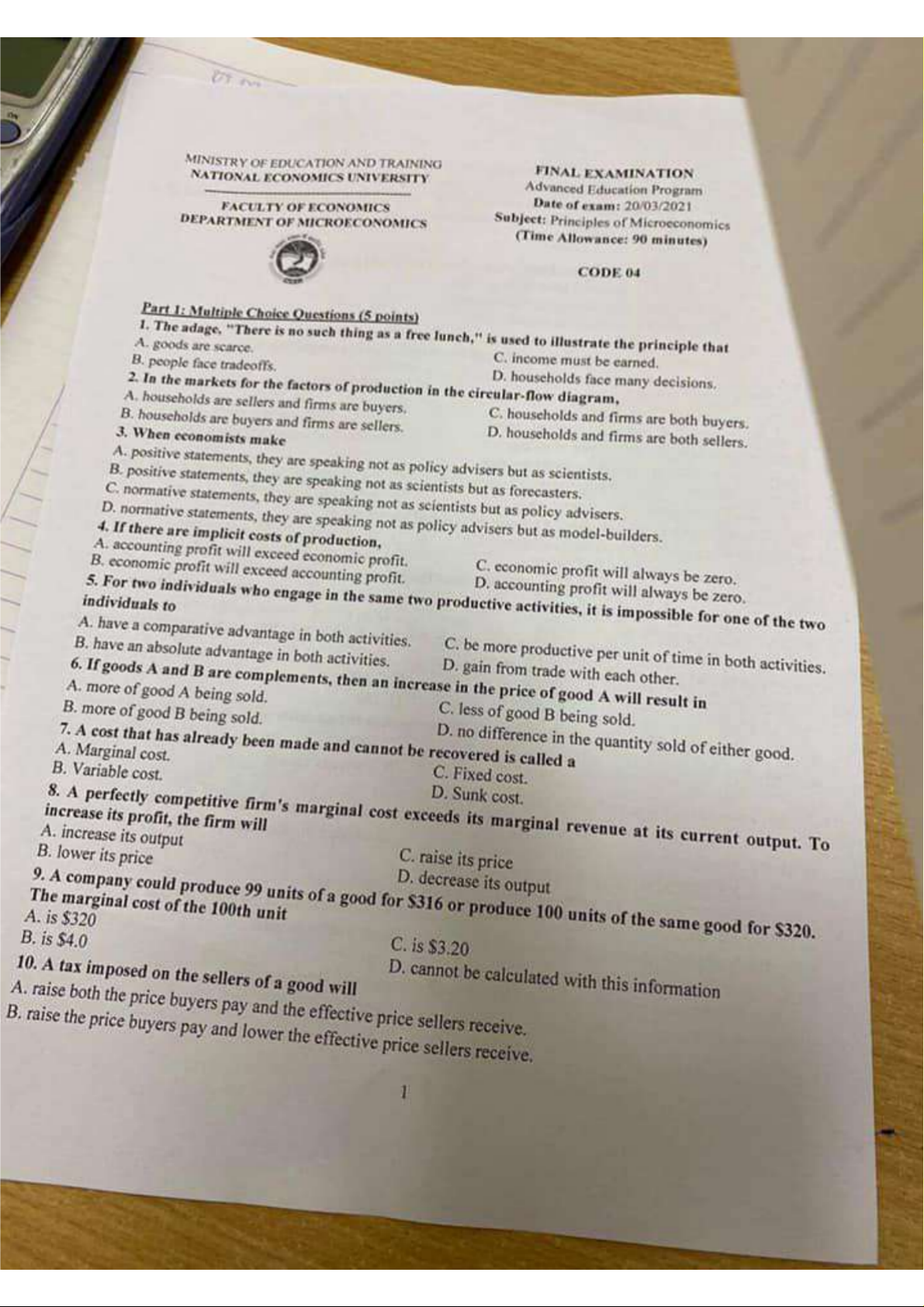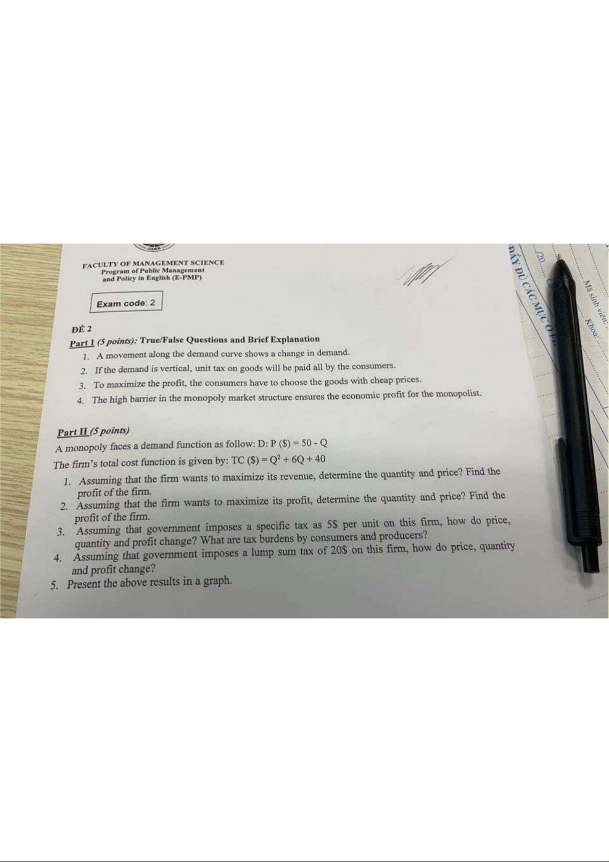 Microeconomics Exam Questions and Solutions | Microeconomics | Trường Đại học Quốc tế, Đại học Quốc gia Thành phố Hồ Chí Minh