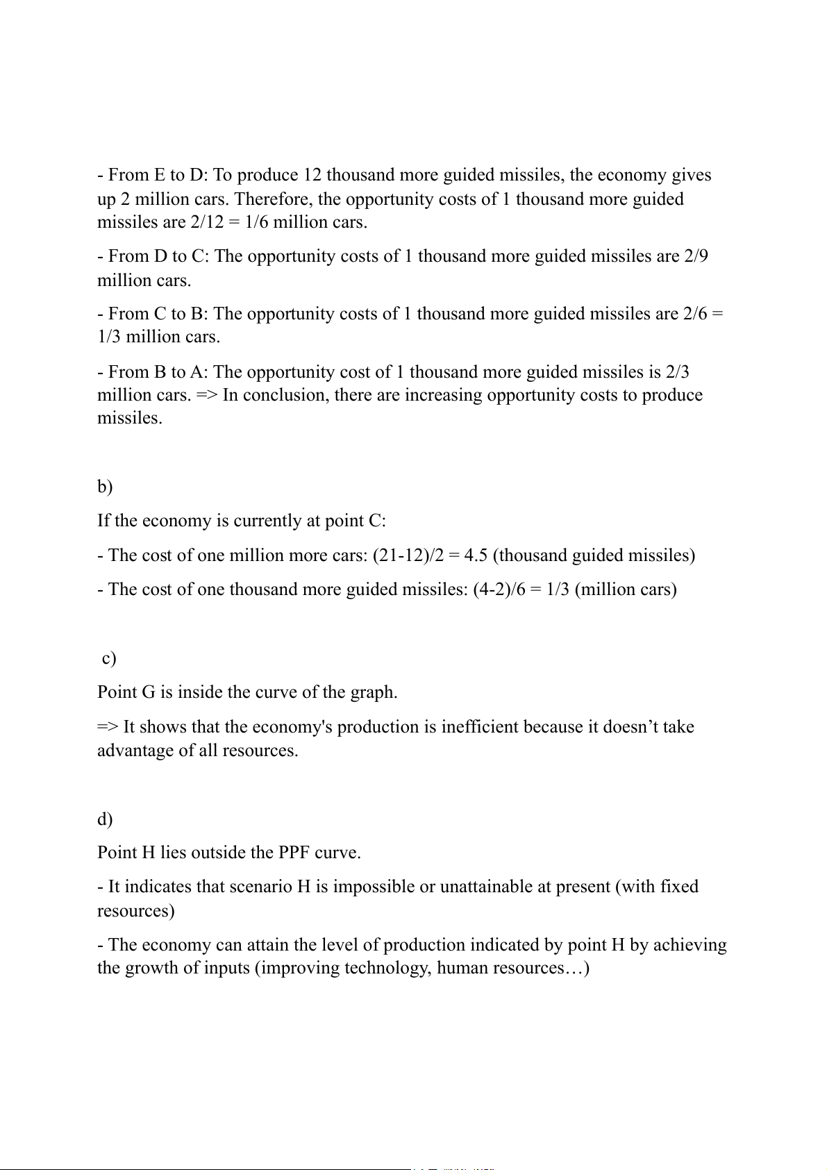 million cars. => In conclusion, there are increasing opportunity costs to produce missiles. b)