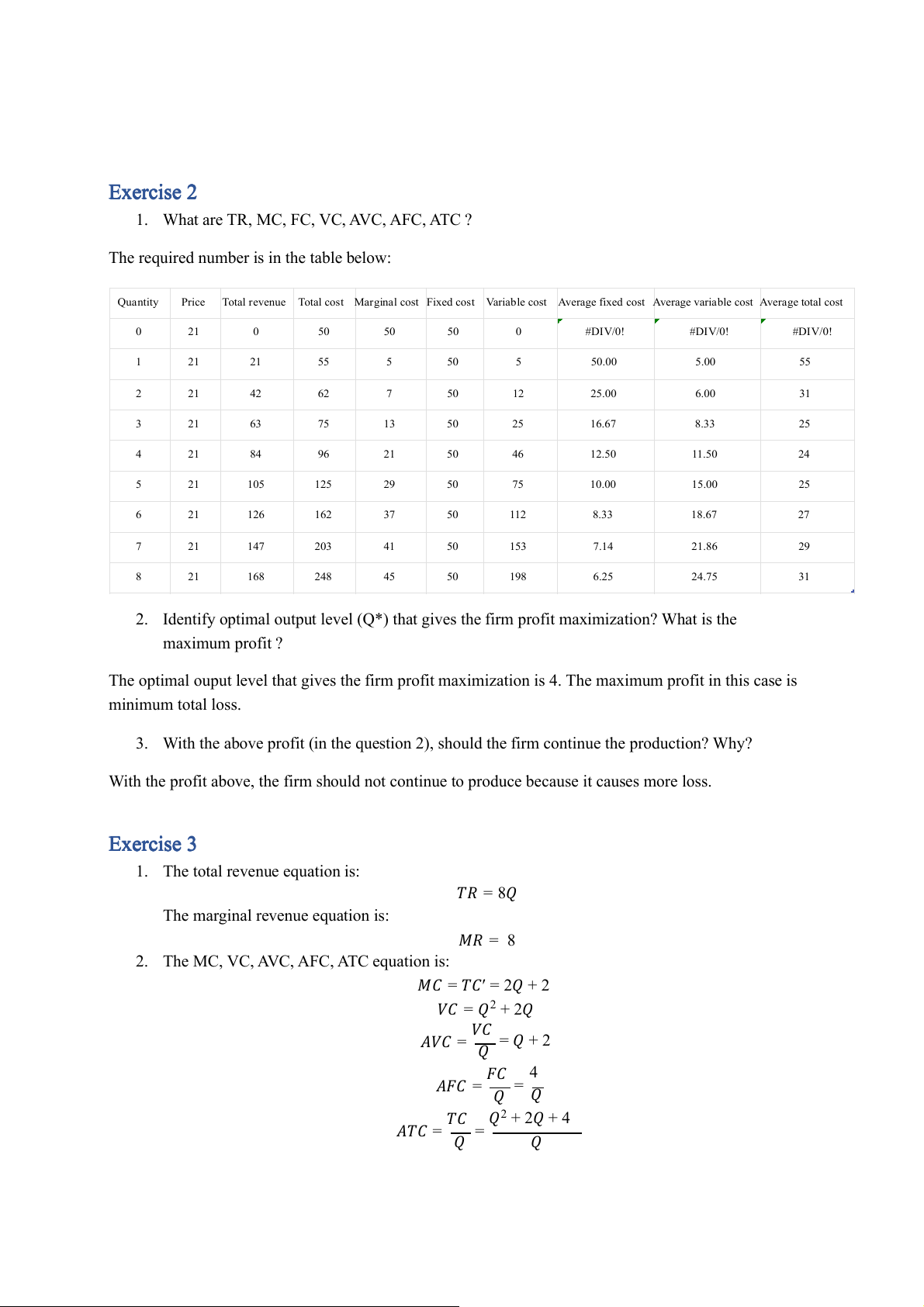 With the profit above, the firm should not continue to produce because it causes more loss. Exe Ex r e c r i c s i e s e 3 3