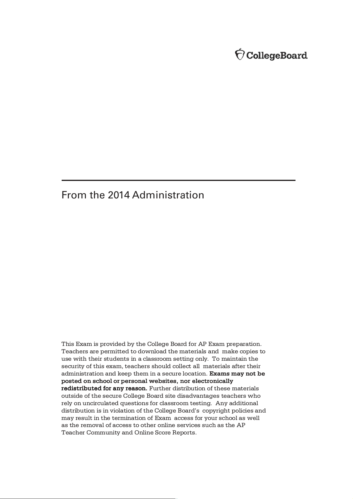 administration and keep them in a secure location. Ex E ams m ay n o n t be po p s o te t d on s ch c oo o l o l r personal we bs b it i es e , n or electronically y redistributed fo f r a ny re r a e s a o s n o .