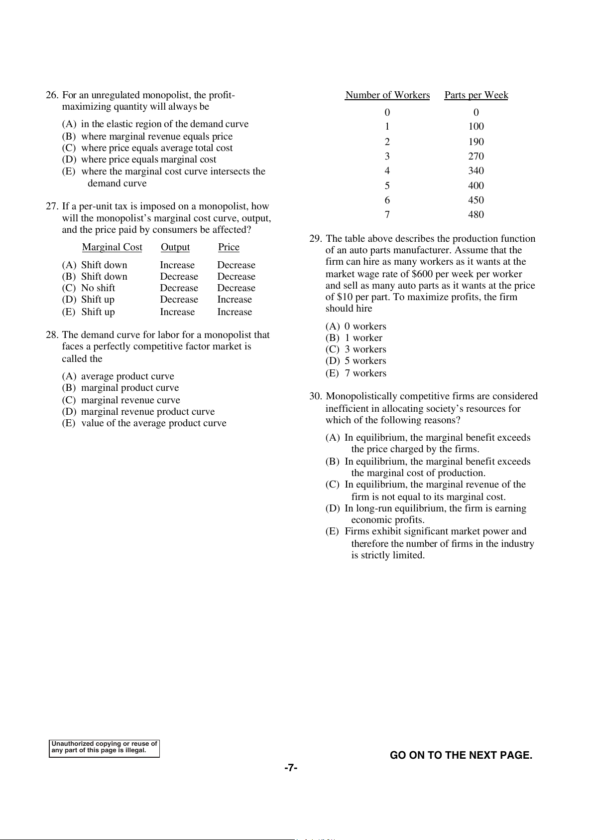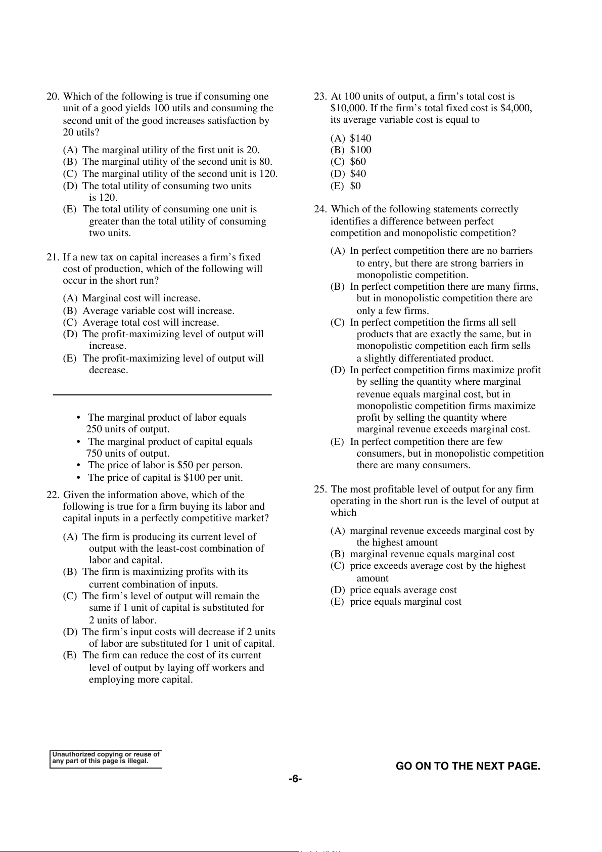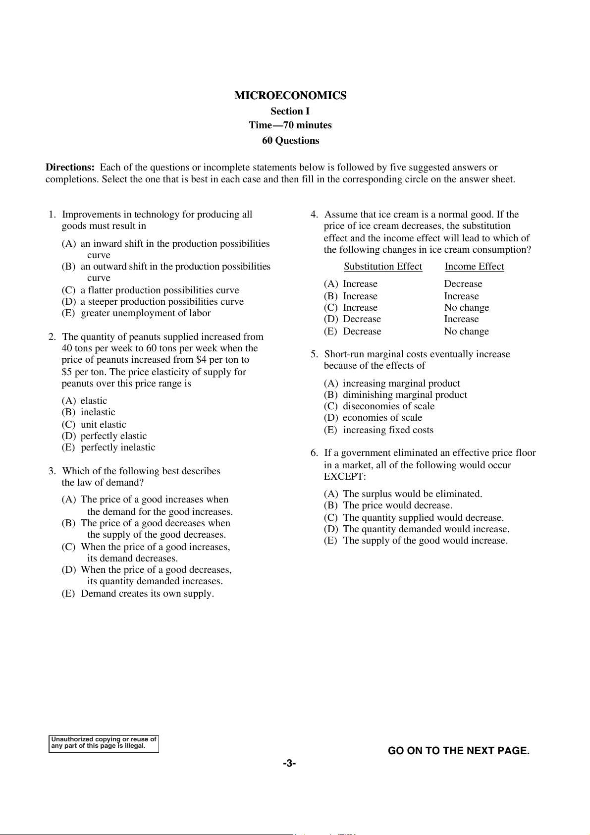 skills and knowledge of this course. -2- MICROECONOMICS Section I Time—70 minutes 60 Questions