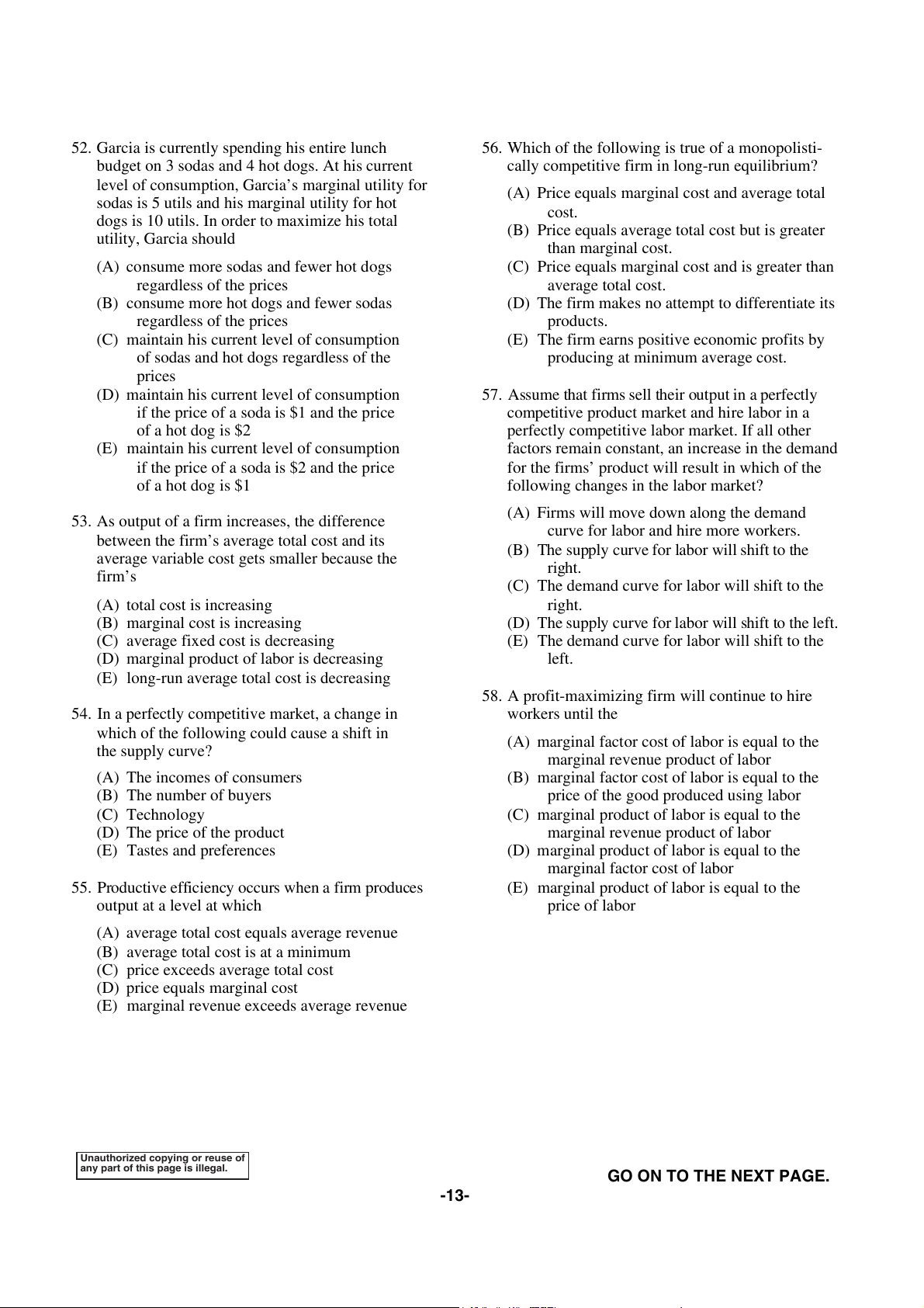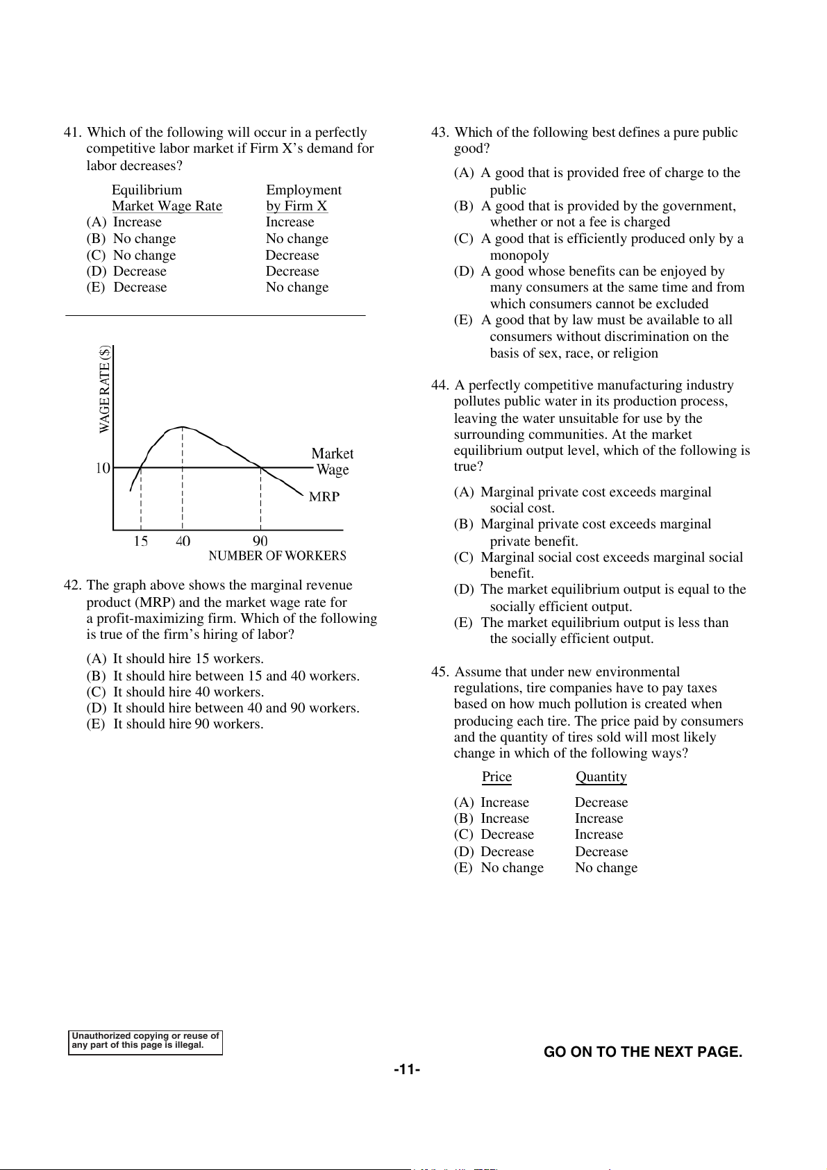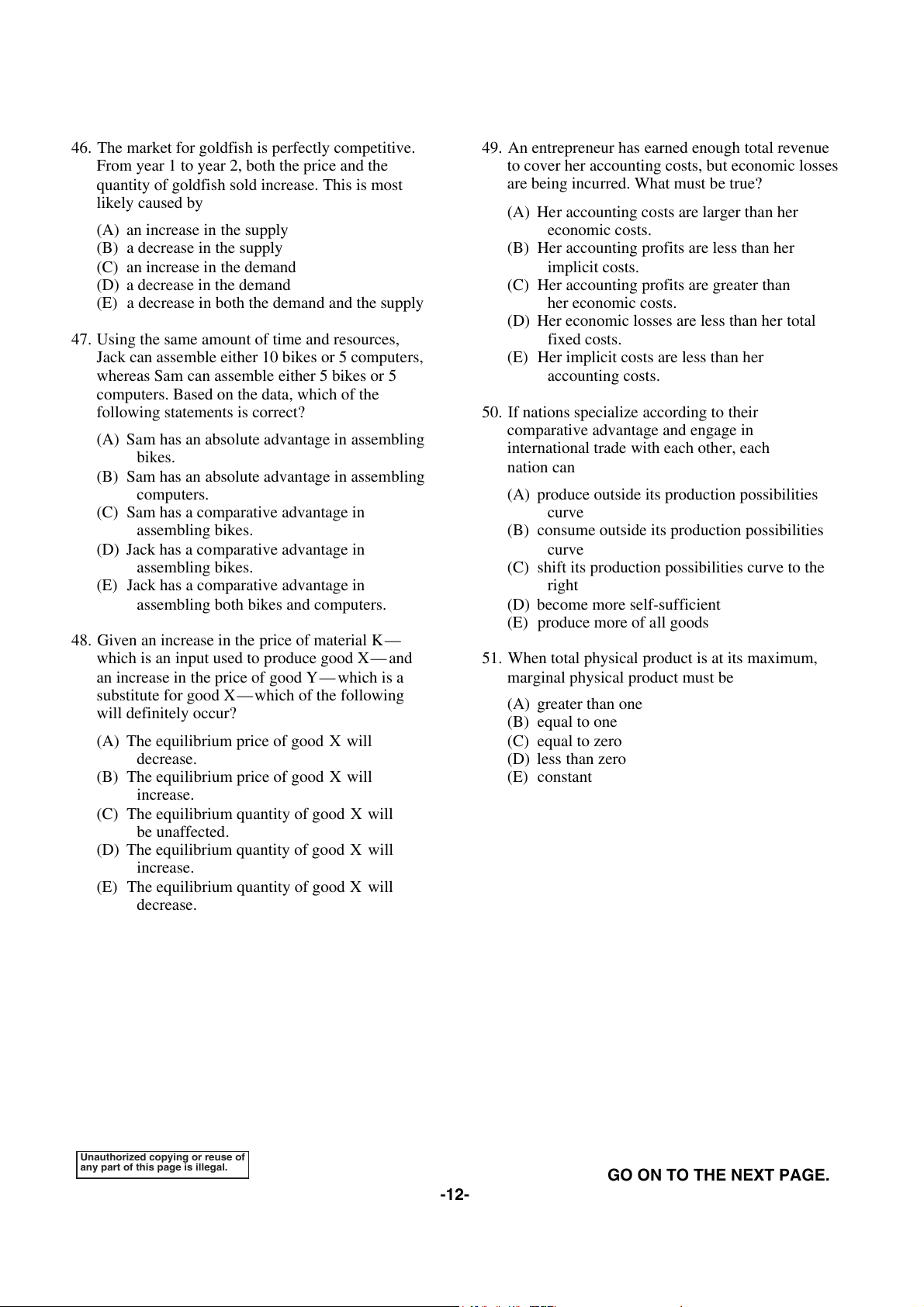 skills and knowledge of this course. -2- MICROECONOMICS Section I Time—70 minutes 60 Questions
