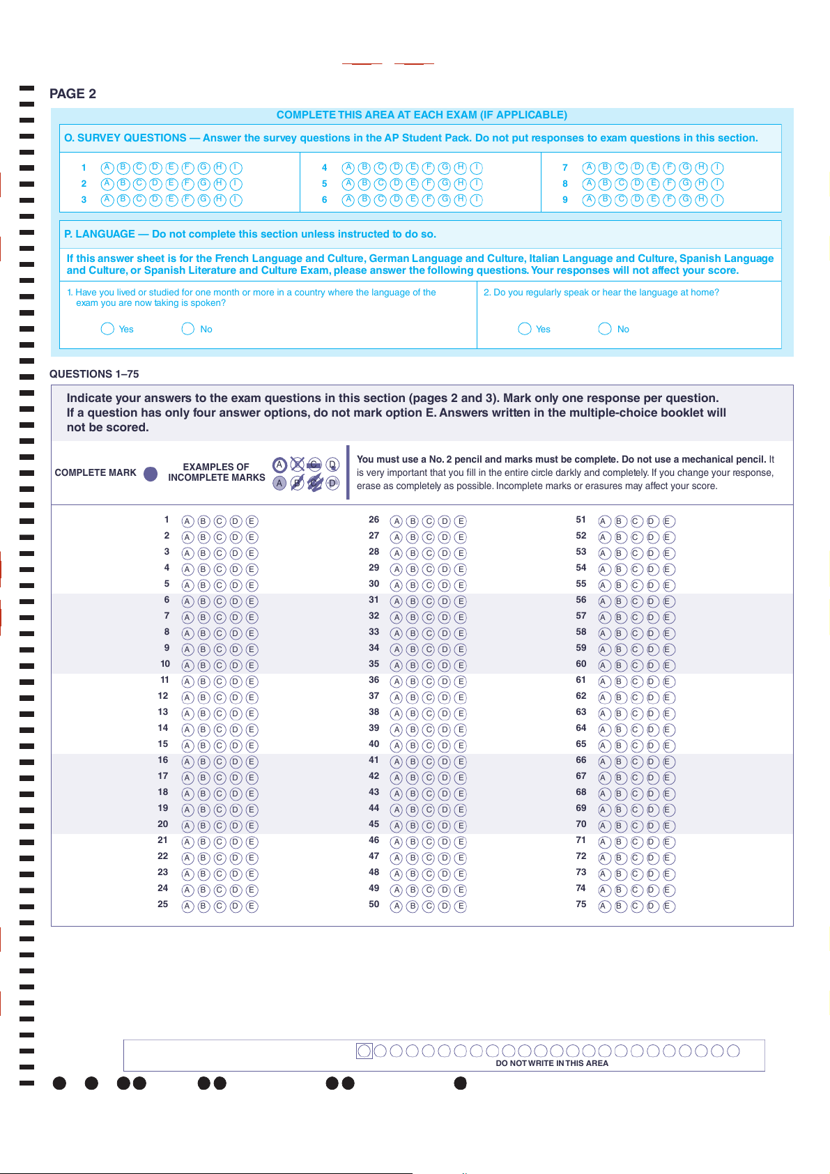 erase as completely as possible. Incomplete marks or erasures may affect your score. 1 A B C D E 26 A B C D E 51 A B C D E 2 A B C D E 27 A B C D E 52 A B C D E 3 A B C D E 28 A B C D E 53 A B C D E 4 A B C D E 29 A B C D E 54 A B C D E 5 A B C D E 30 A B C D E 55 A B C D E 6 A B C D E 31 A B C D E 56 A B C D E 7 A B C D E 32 A B C D E 57 A B C D E 8 A B C D E 33 A B C D E 58 A B C D E 9 A B C D E 34 A B C D E 59 A B C D E 10 A B C D E 35 A B C D E 60 A B C D E 11 A B C D E 36 A B C D E 61 A B C D E 12 A B C D E 37 A B C D E 62 A B C D E 13 A B C D E 38 A B C D E 63 A B C D E 14 A B C D E 39 A B C D E 64 A B C D E 15 A B C D E 40 A B C D E 65 A B C D E 16 A B C D E 41 A B C D E 66 A B C D E 17 A B C D E 42 A B C D E 67 A B C D E 18 A B C D E 43 A B C D E 68 A B C D E 19 A B C D E 44 A B C D E 69 A B C D E 20 A B C D E 45 A B C D E 70 A B C D E 21 A B C D E 46 A B C D E 71 A B C D E 22 A B C D E 47 A B C D E 72 A B C D E 23 A B C D E 48 A B C D E 73 A B C D E 24 A B C D E 49 A B C D E 74 A B C D E 25 A B C D E 50 A B C D E 75 A B C D E