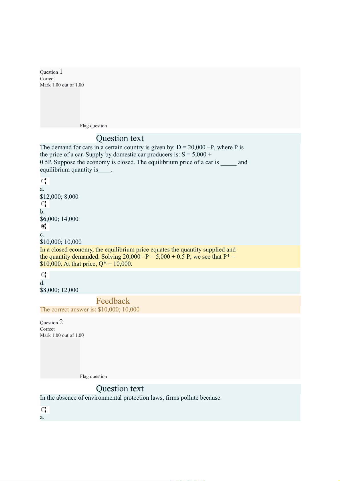 The correct answer is: $10,000; 10,000 Question 2 Correct Mark 1.00 out of 1.00 Flag question Question text