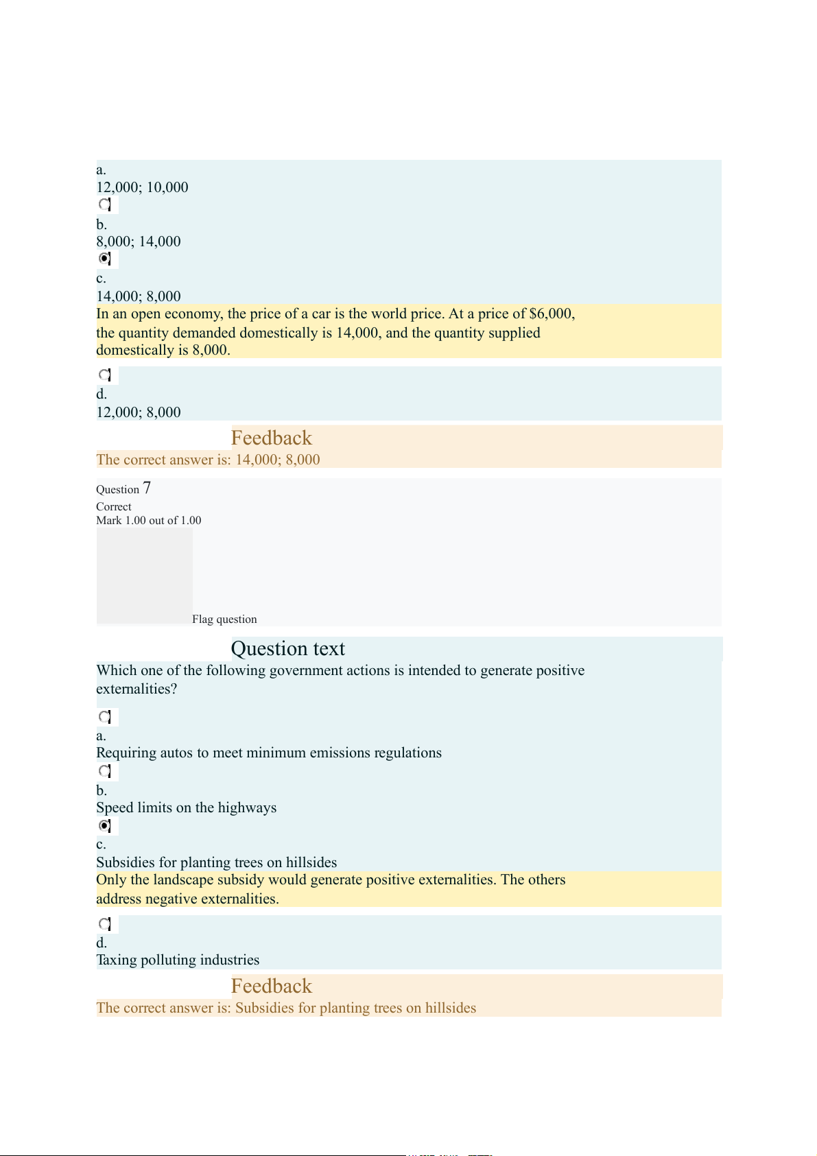 The correct answer is: Subsidies for planting trees on hillsides Question 8 Correct Mark 1.00 out of 1.00 Flag question Question text
