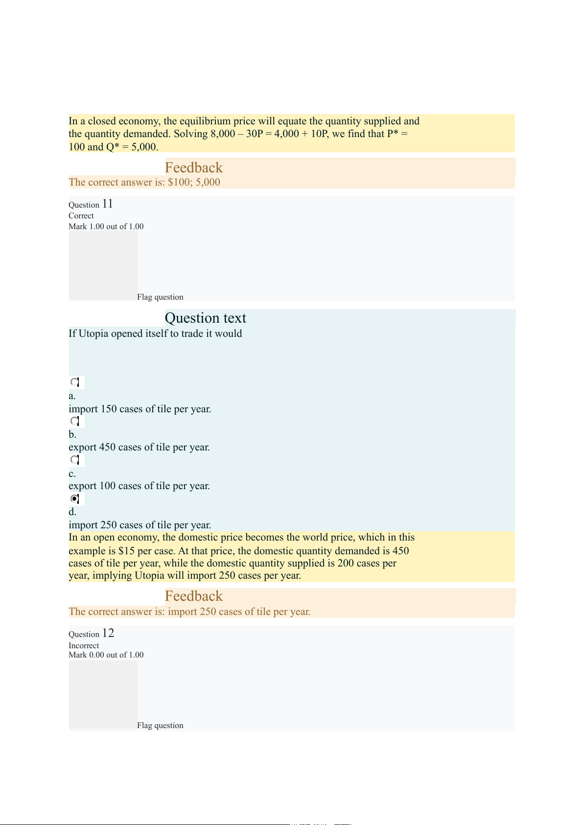 The correct answer is: import 250 cases of tile per year. Question 12 Incorrect Mark 0.00 out of 1.00 Flag question Question text