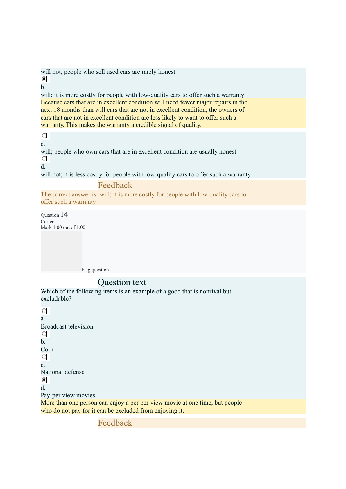 The correct answer is: private good. Question 18 Incorrect Mark 0.00 out of 1.00 Flag question Question text