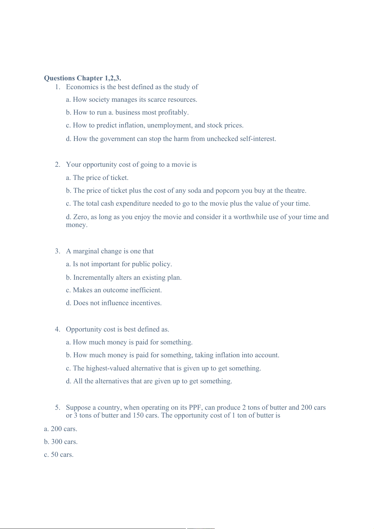 Questions Chapter 1,2,3.