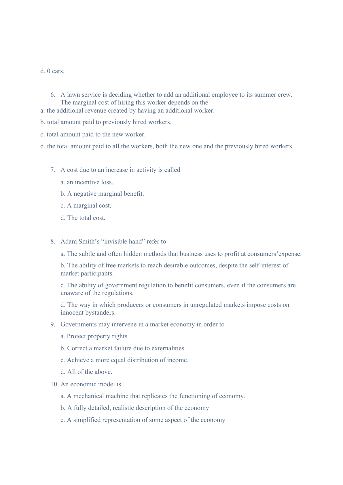 c. Achieve a more equal distribution of income. d. All of the above. 10. An economic model is