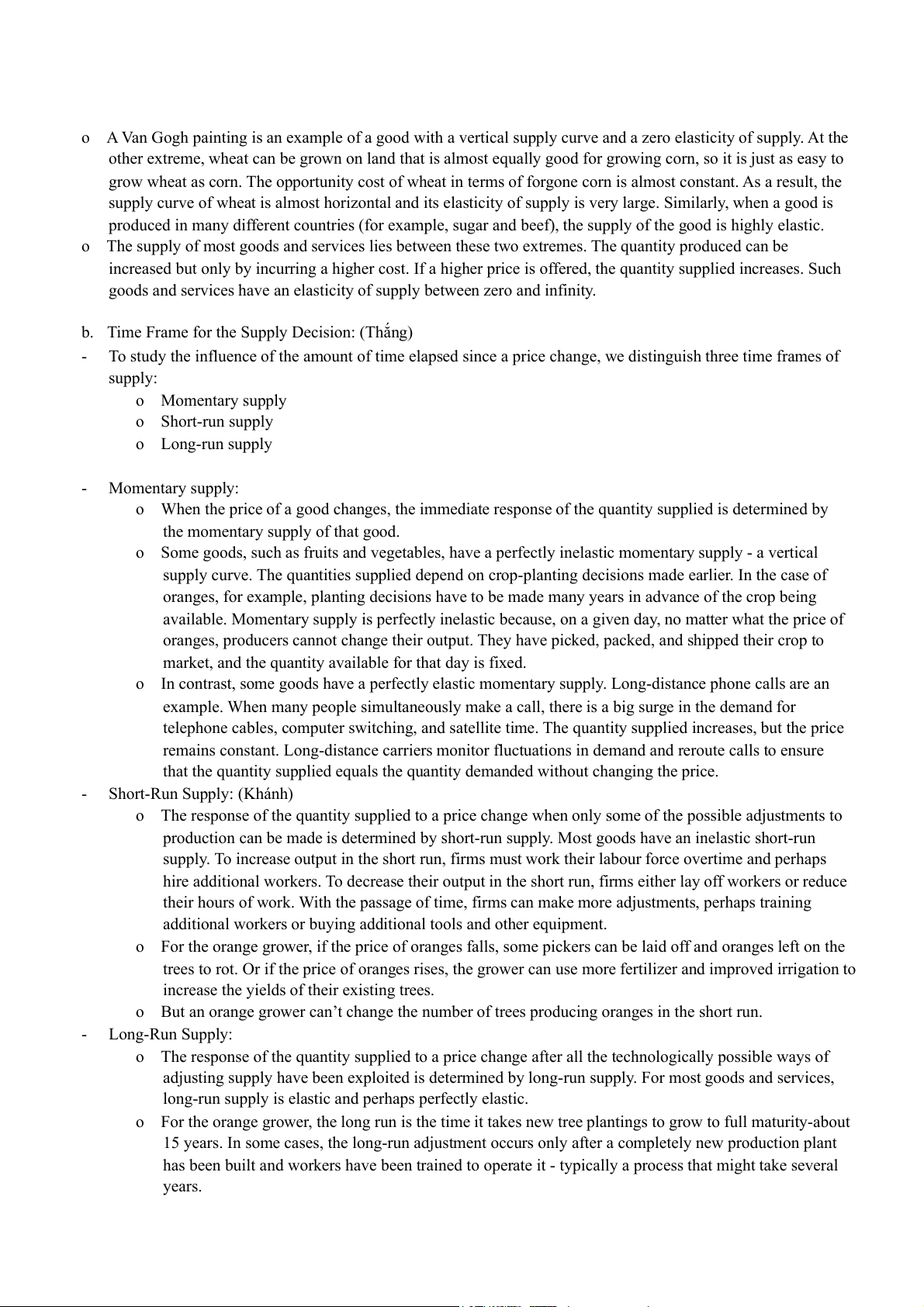 b. Time Frame for the Supply Decision: (Thắng)