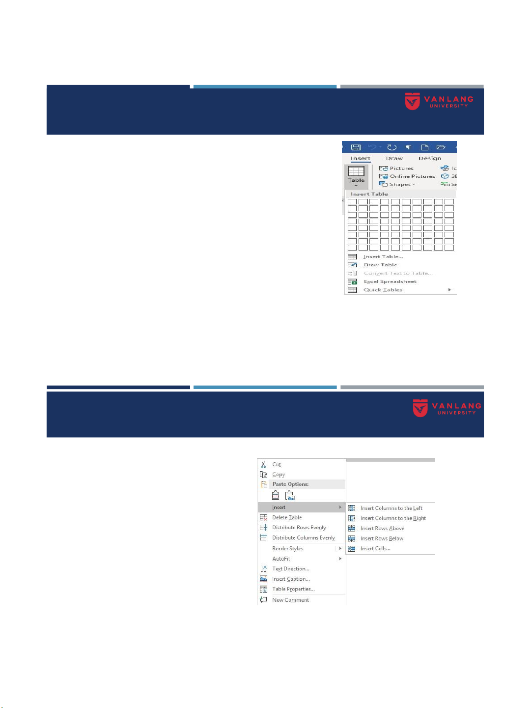 Thêm dòng, cột trong bảng :