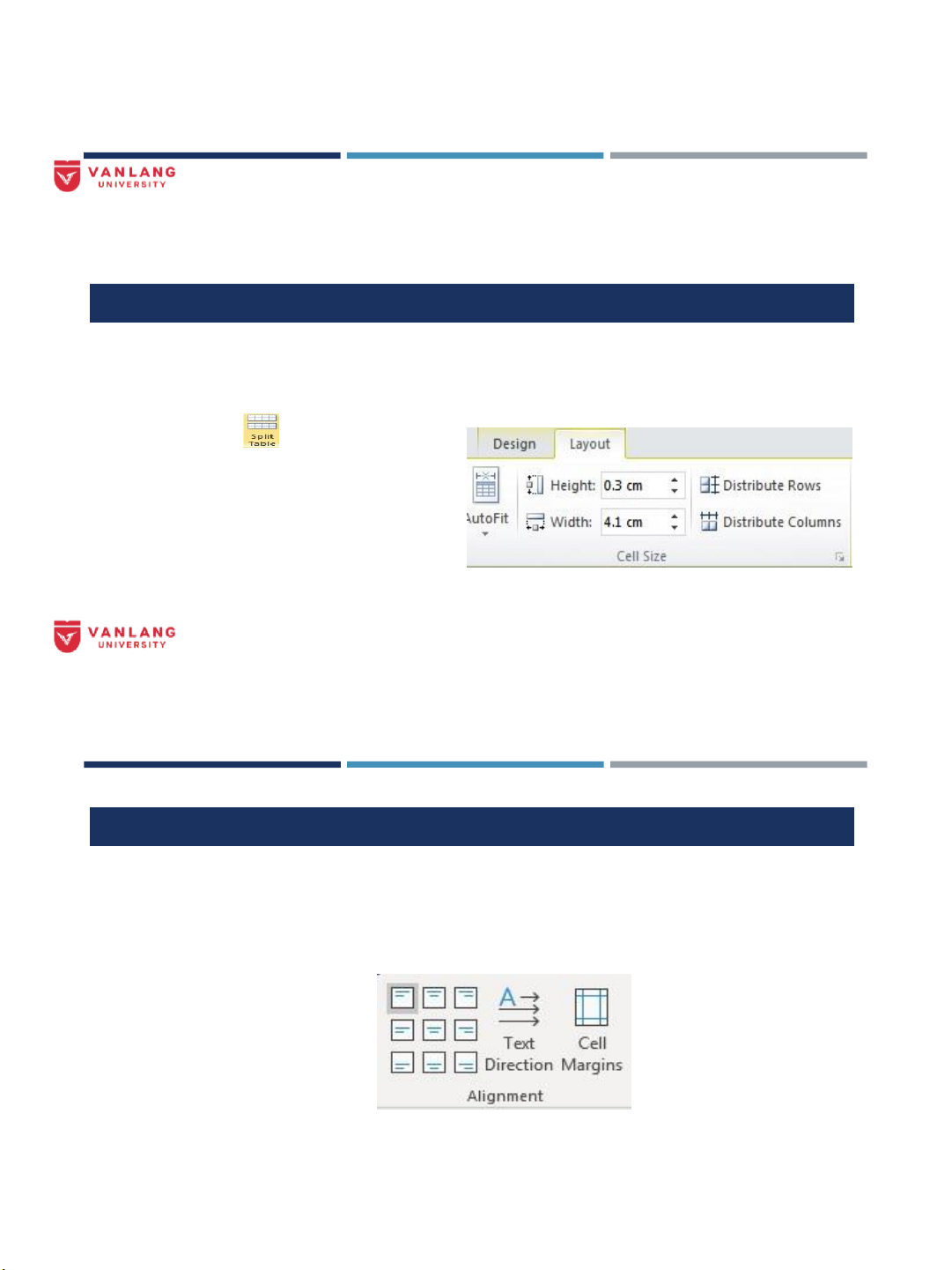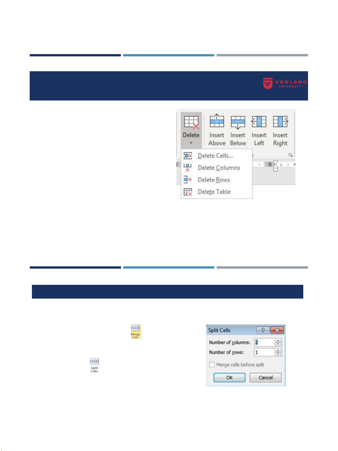 Tách ô: chọn ô muốn tách Layout Merge Split Cells (