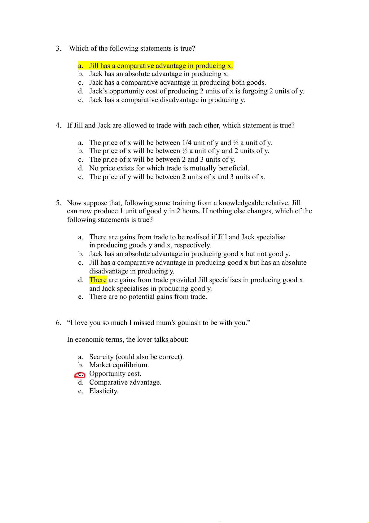 d. Jack’s opportunity cost of producing 2 units of x is forgoing 2 units of y.