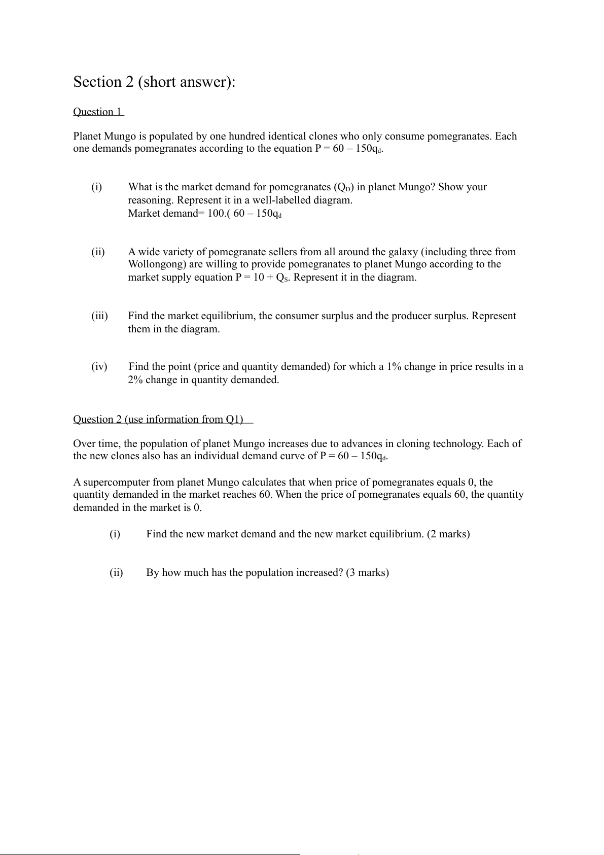e. The demand curve is not downward sloping. Section 2 (short answer): Question 1