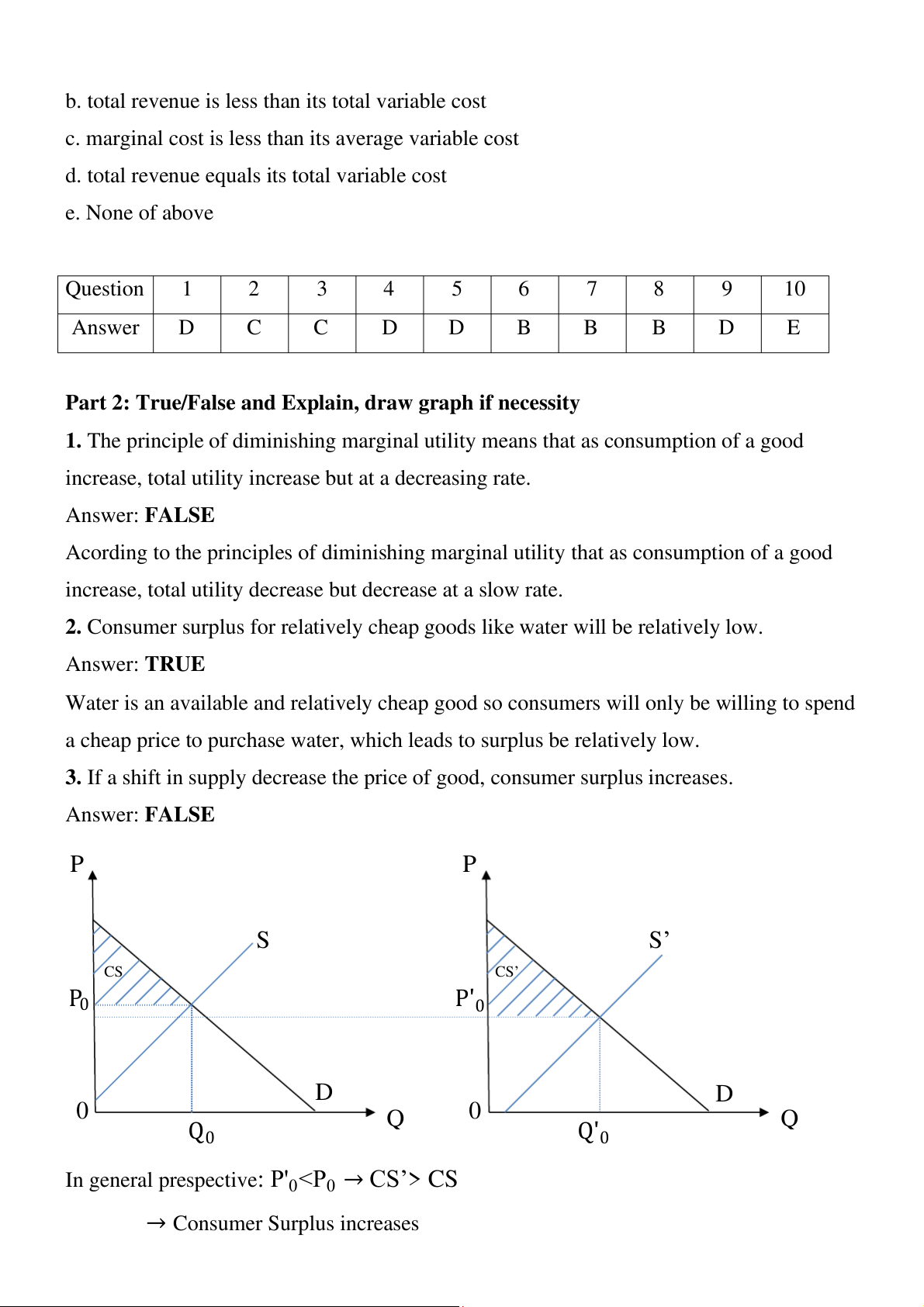 2. Consumer surplus for relatively cheap goods like water wil be relatively low. Answer: TRUE