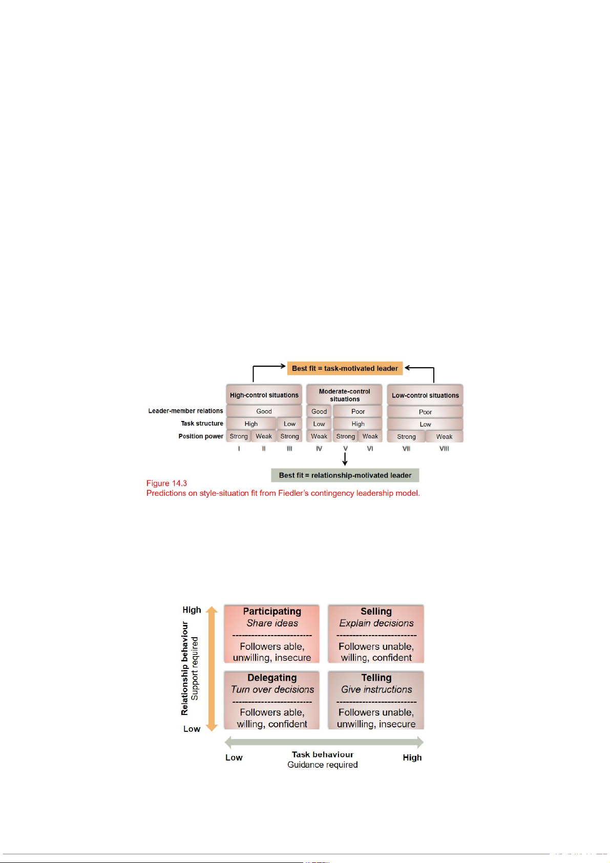 - Fiedler believed that leadership style is part of one’s personality & is difficult to change.