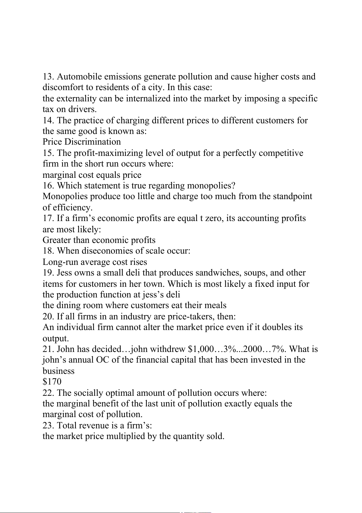 17. If a firm’s economic profits are equal t zero, its accounting profits are most likely: Greater than economic profits