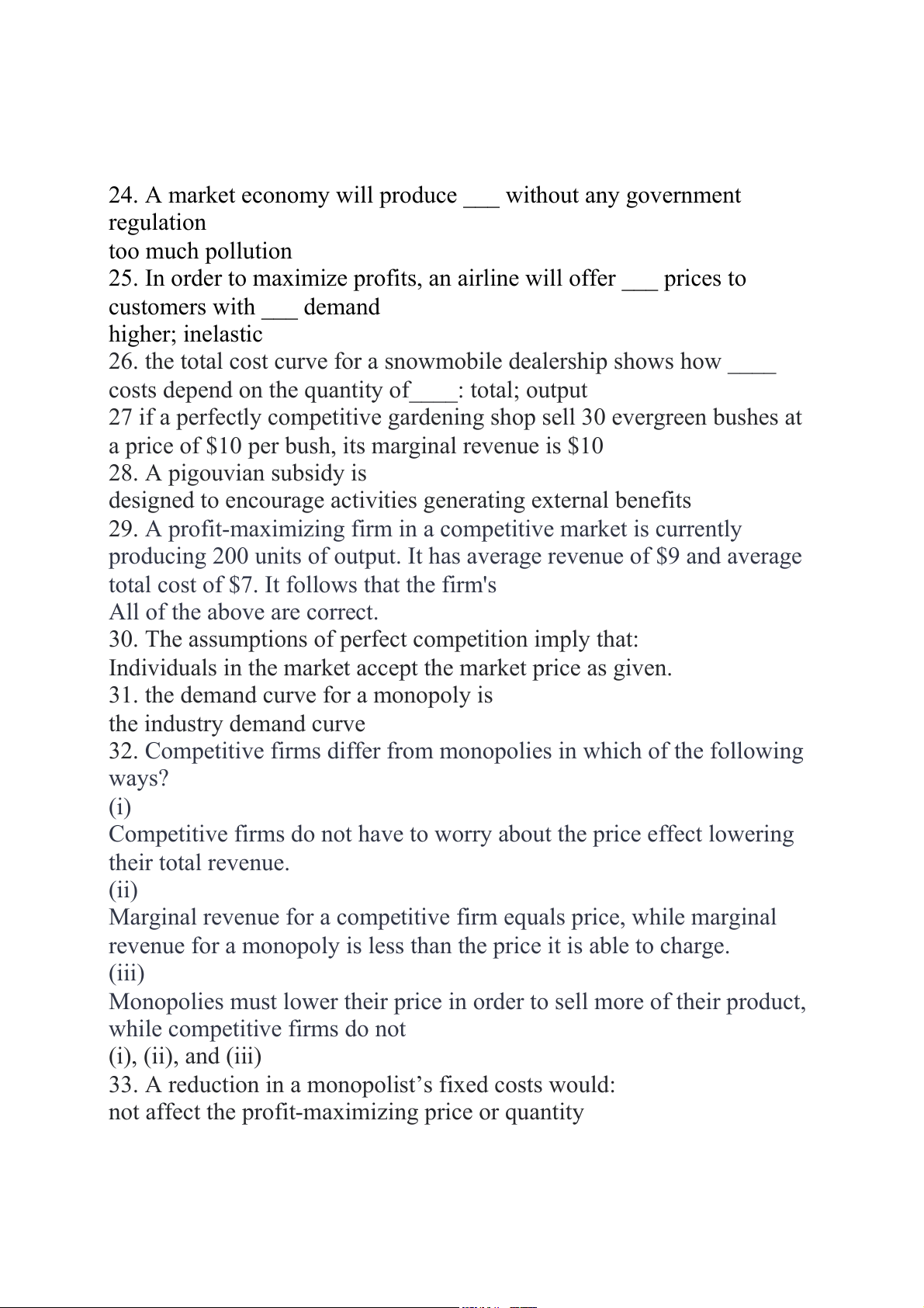 32. Competitive firms differ from monopolies in which of the following ways? (i)