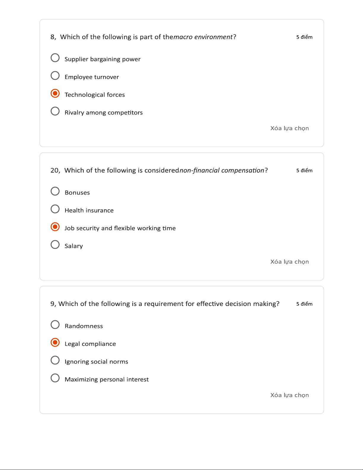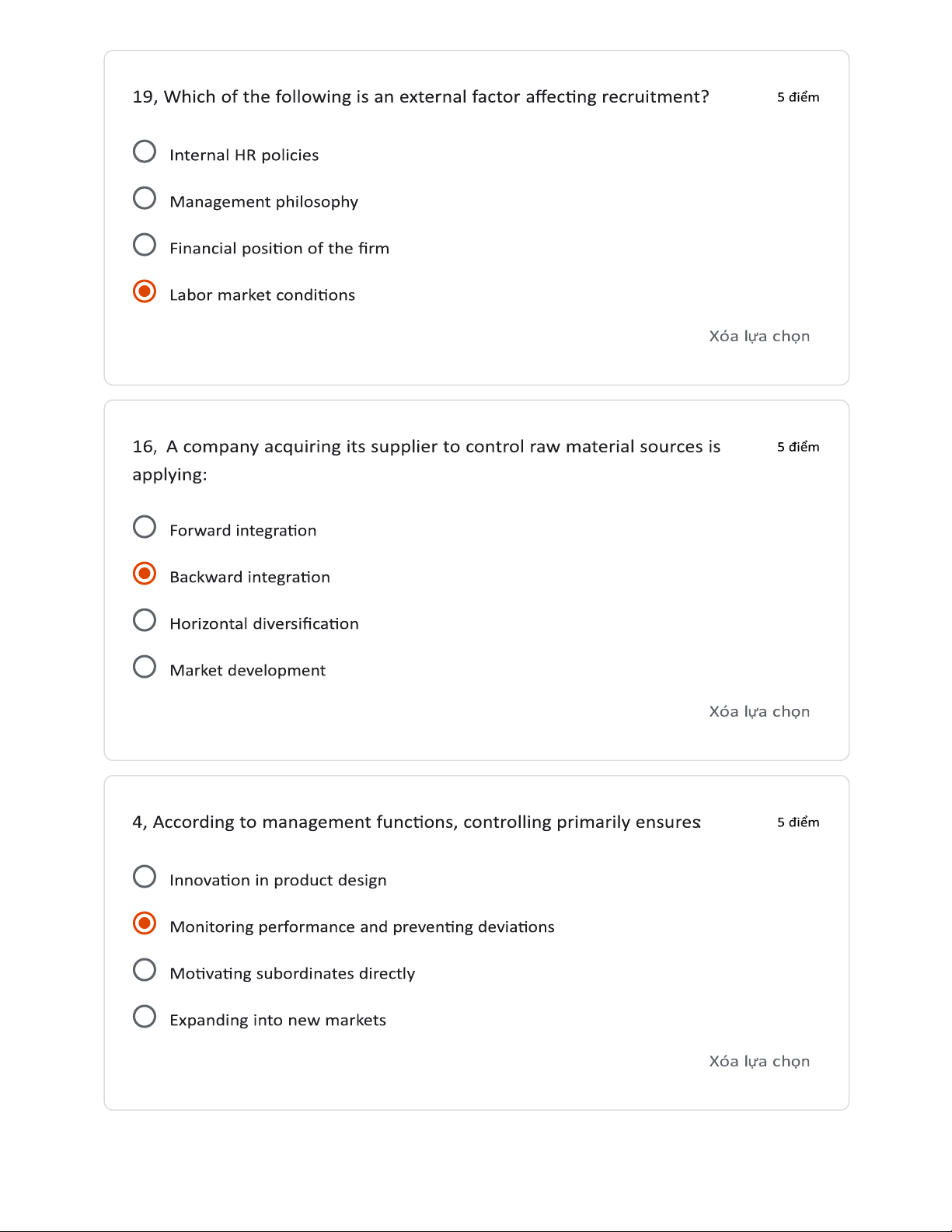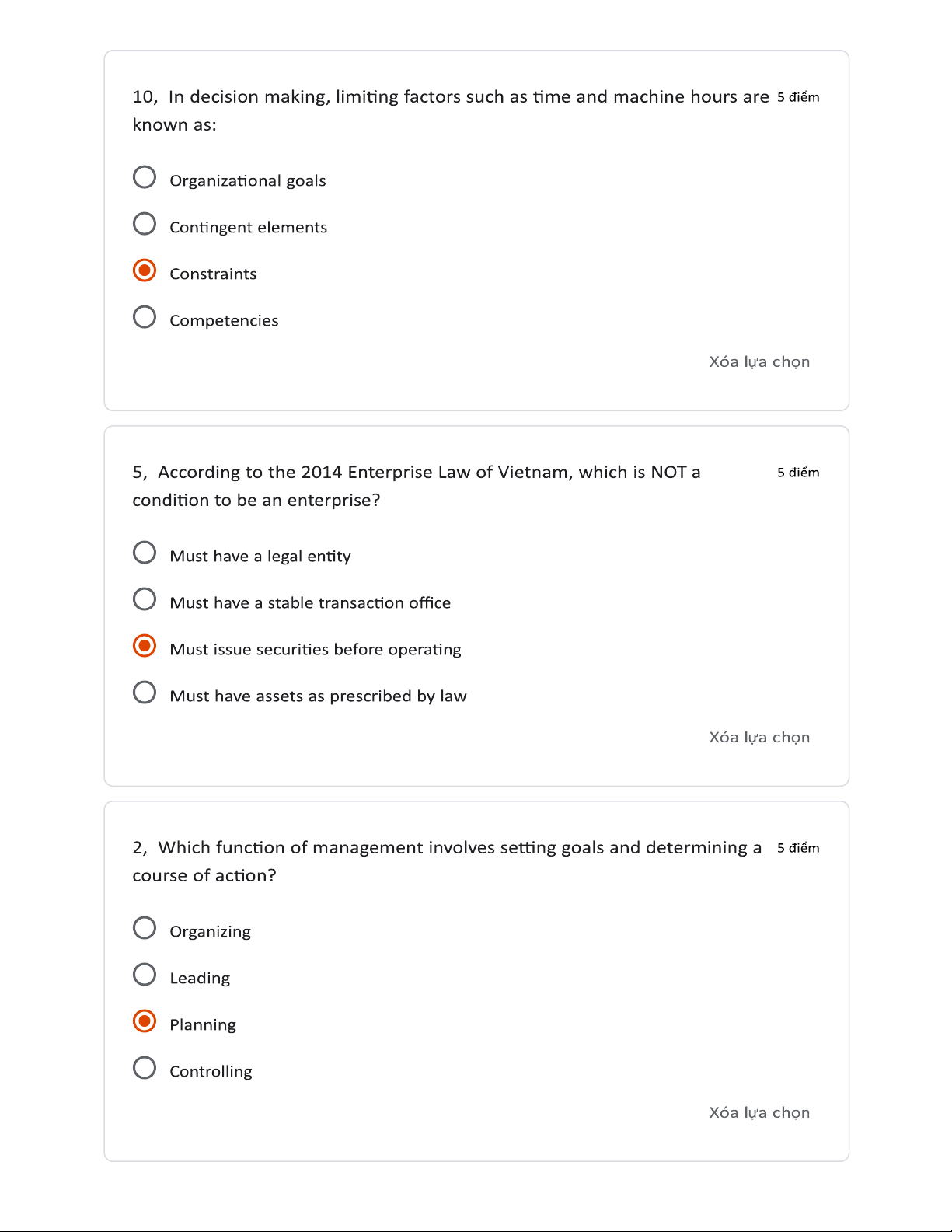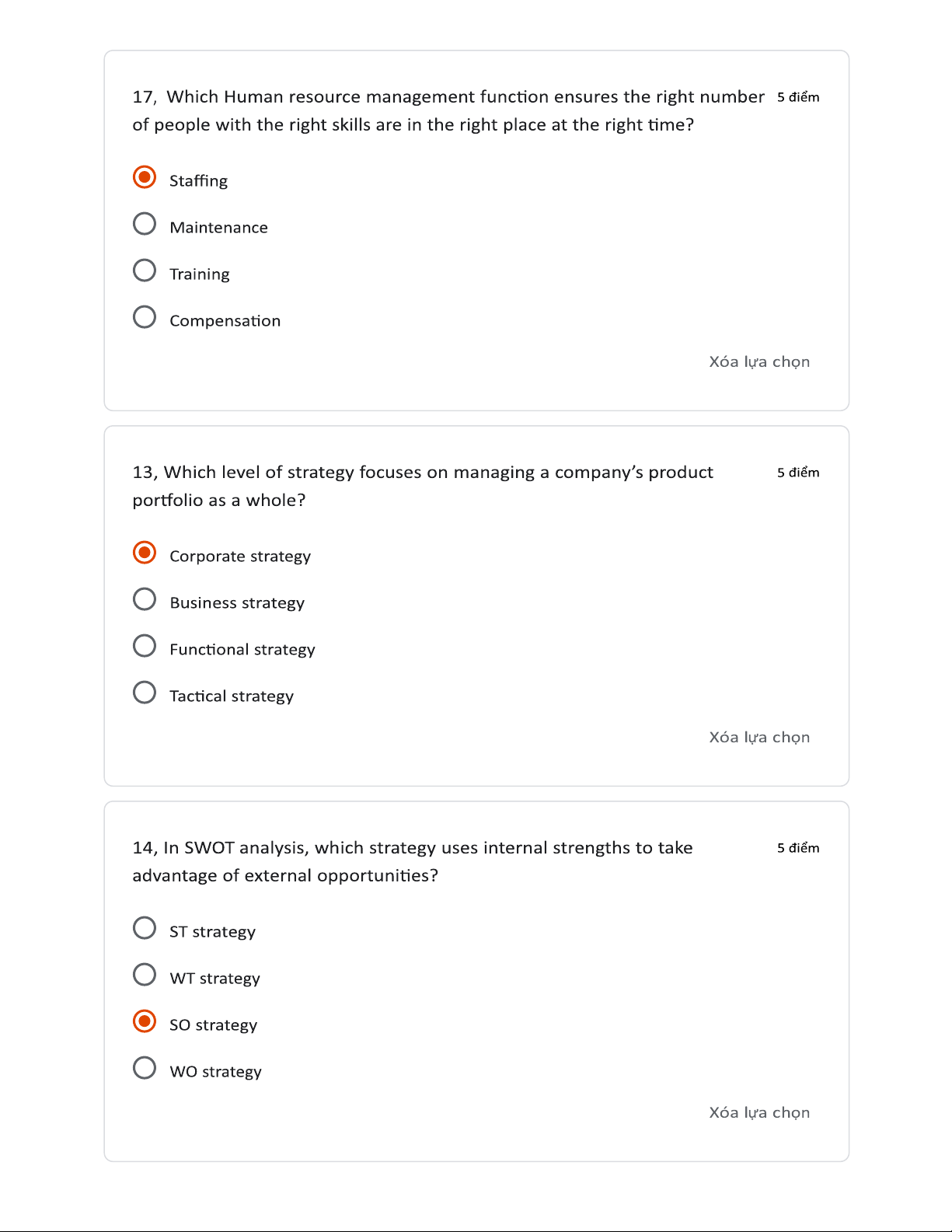 Midterm test for Business Administration course no. 2 Gửi Xóa hết câu trả lời
