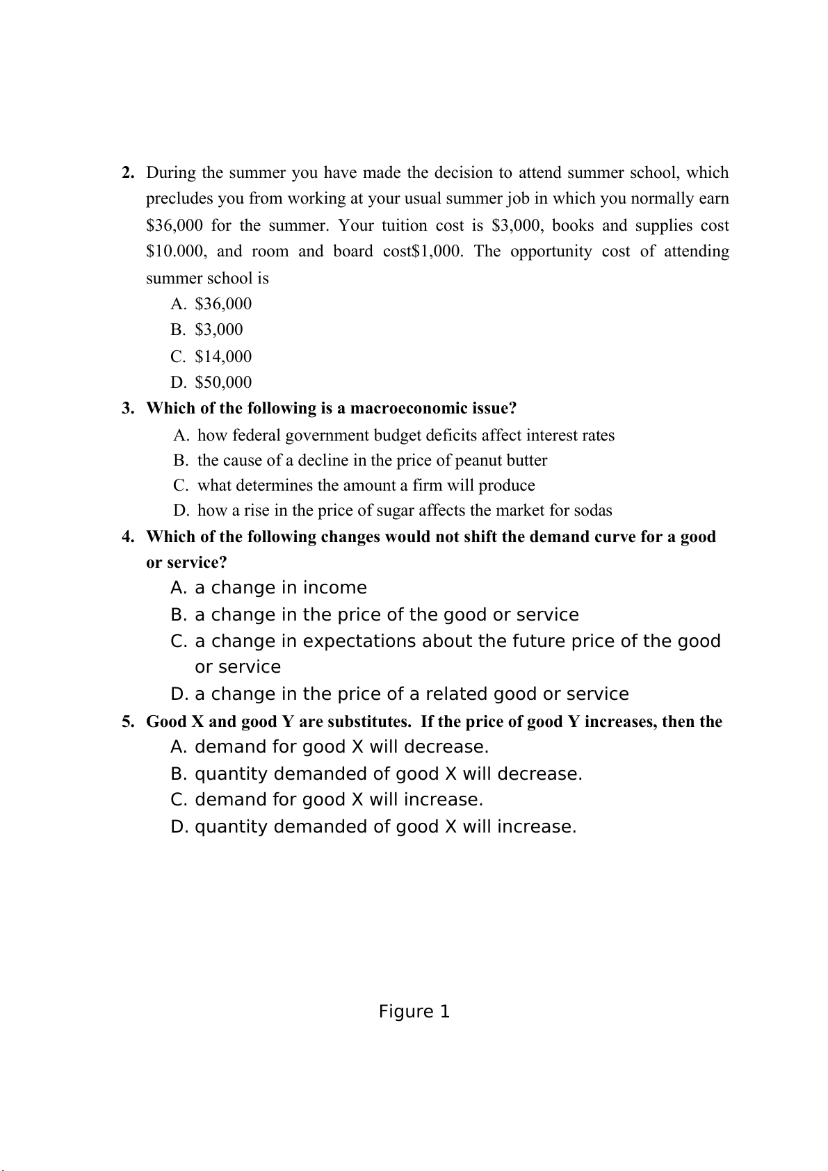 $10.000, and room and board cost$1,000. The opportunity cost of attending summer school is A. $36,000 B. $3,000 C. $14,000 D. $50,000