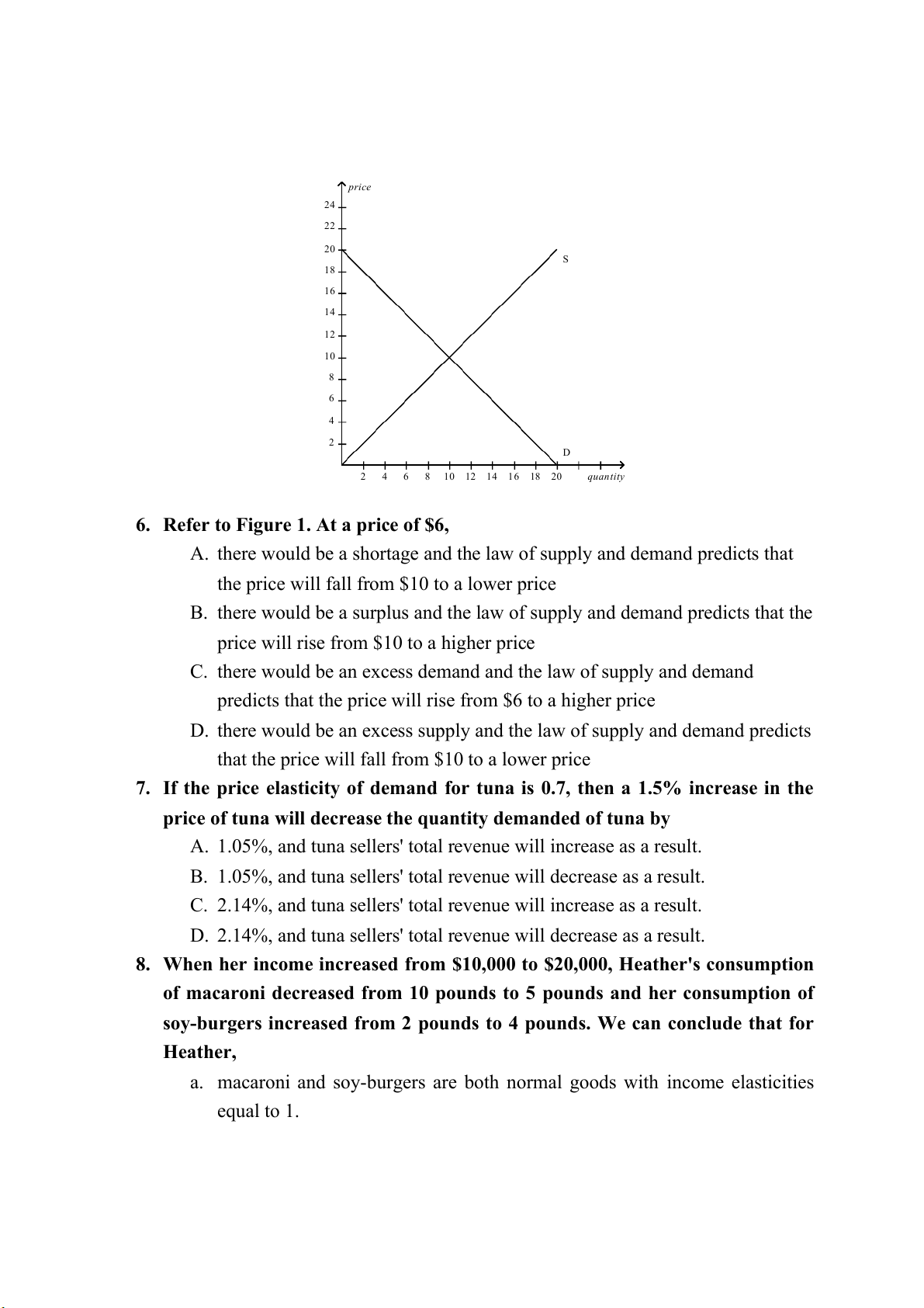 D. quantity demanded of good X will increase. Figure 1 price 24 22 20 S 18 16 14 12 10 8 6 4 2 D 2 4 6 8 10 12 14 16 18 20 quantity