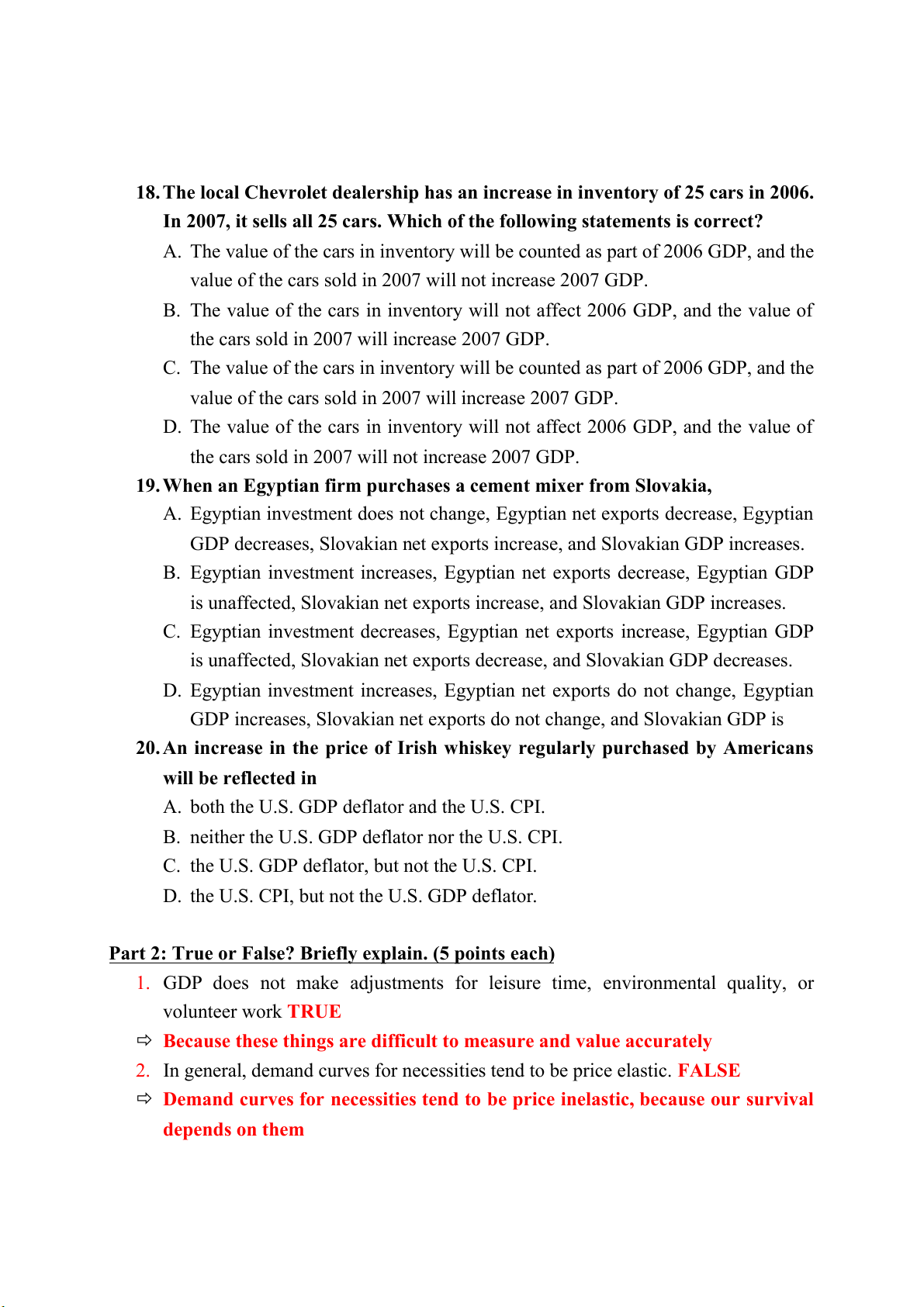 1. GDP does not make adjustments for leisure time, environmental quality, or volunteer work TRUE