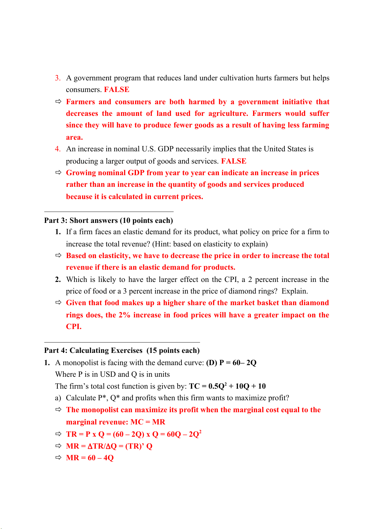 1. A monopolist is facing with the demand curve: (D) P = 60– 2Q