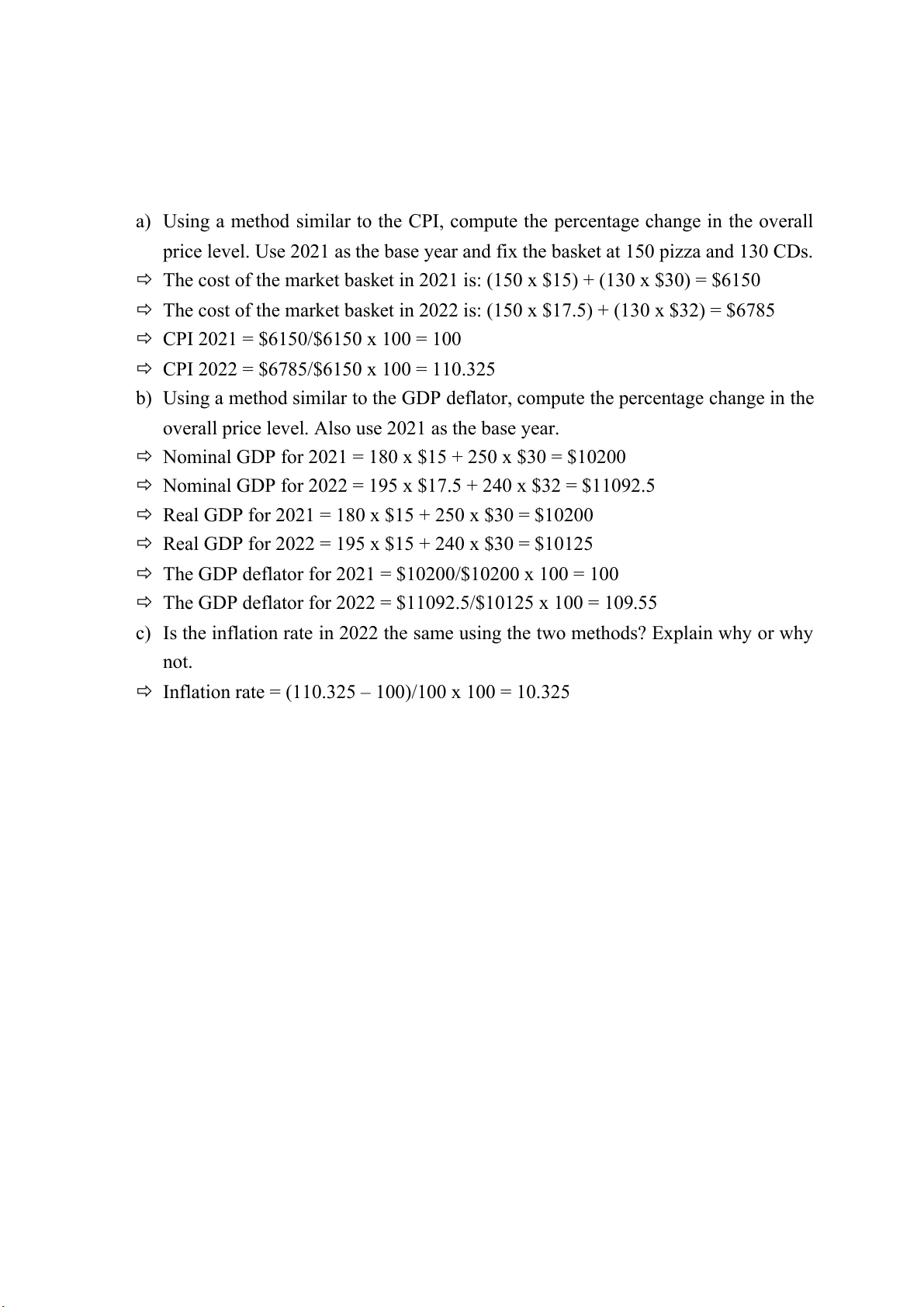 b) Using a method similar to the GDP deflator, compute the percentage change in the
