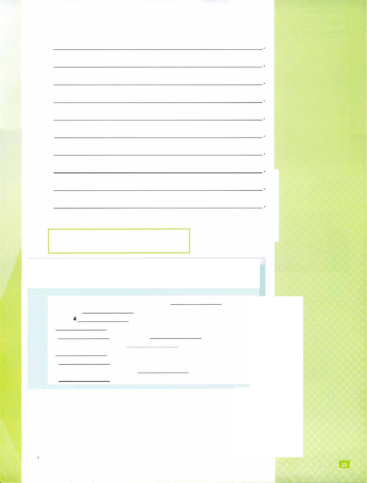 10 My lunch break begin I begins at 12pm and finish/ finishes at 12:45pm.