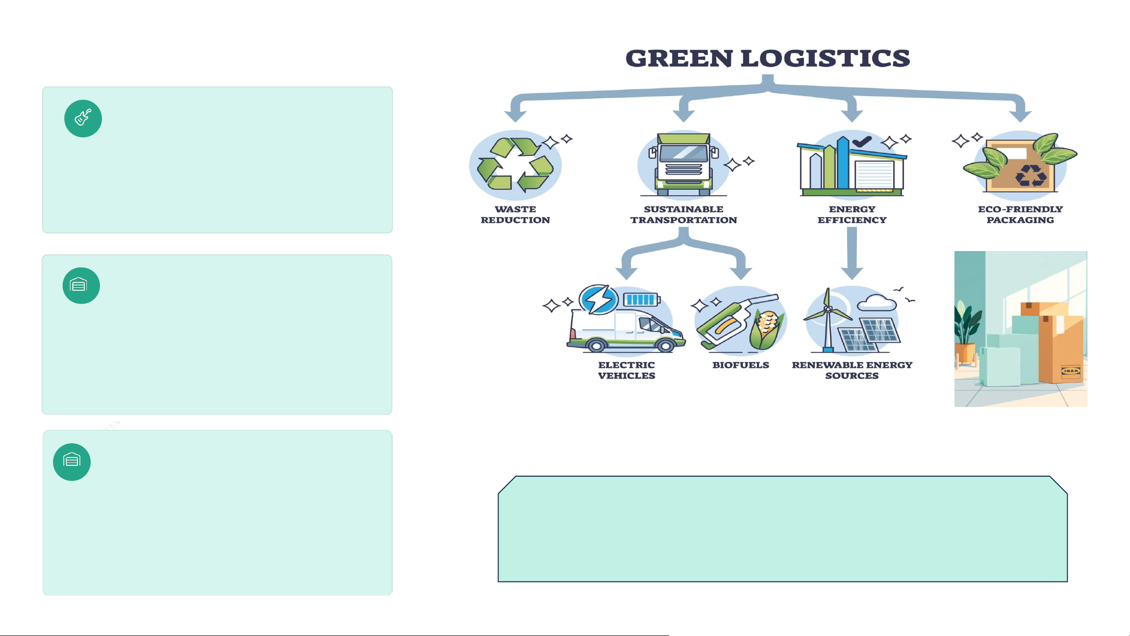 • Hợp tác và quản lí sử dụng chuỗi chặt chẽ, đào tạo các nguồn nhân lực Logistics xanh