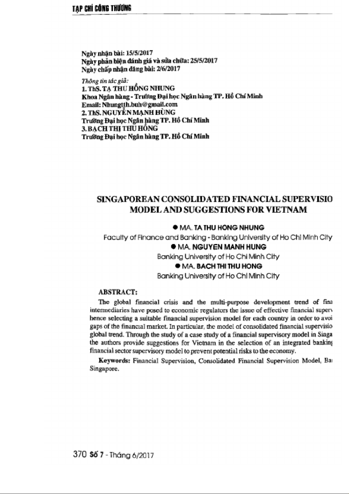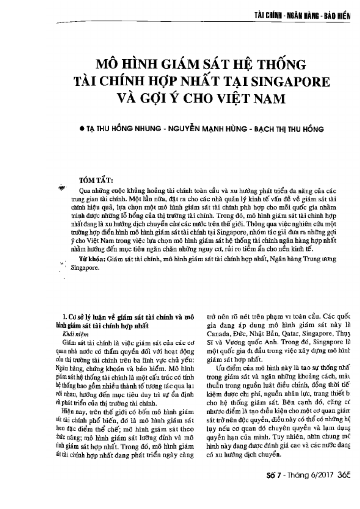 Mô Hình Giám Sát Tài Chính Hợp Nhất Tại Singapore: Gợi Ý Cho Việt Nam | Giám sát tài chính | Học viện Tài chính