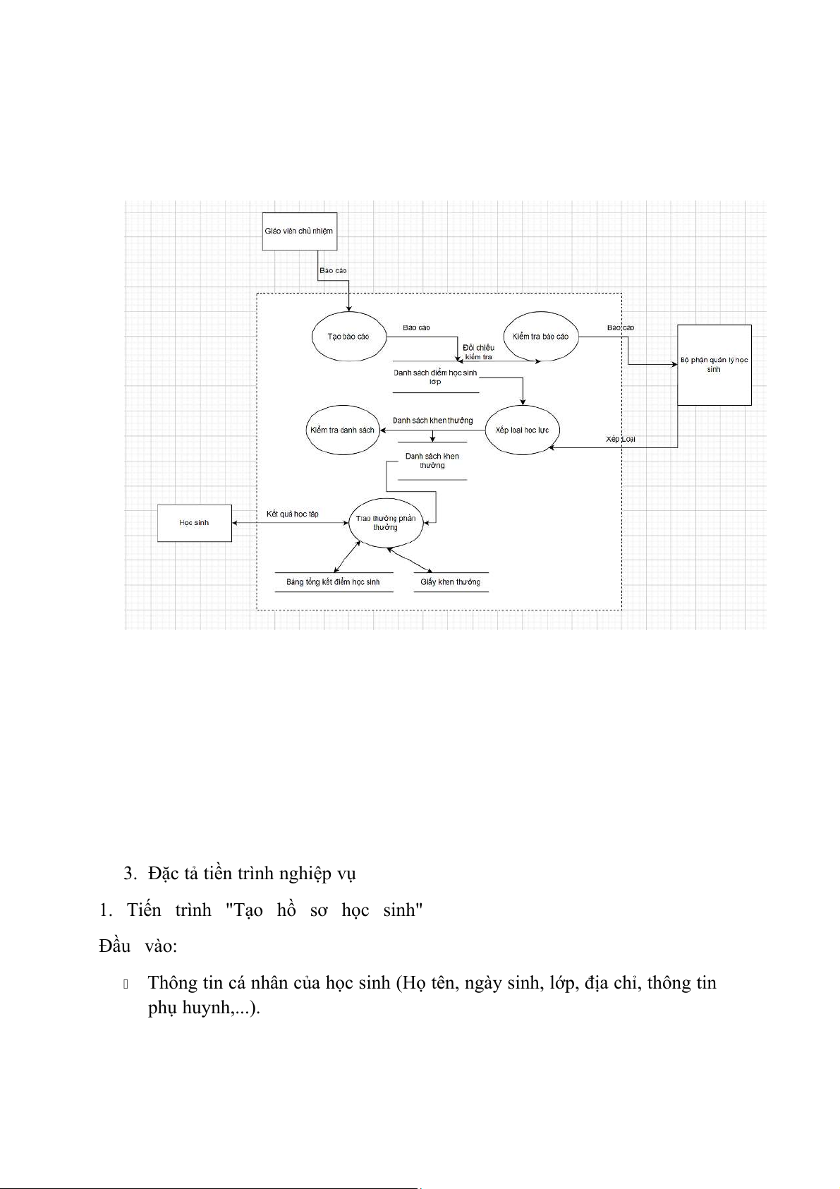 3. Tiến trình "Tạo báo cáo kết quả học tập" Đầu vào: