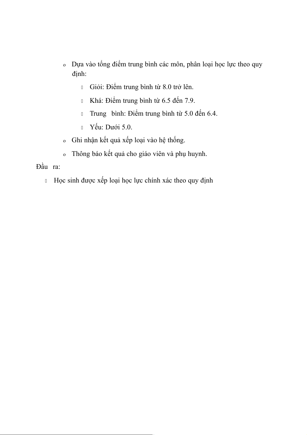 Trung bình: Điểm trung bình từ 5.0 đến 6.4. Yếu: Dưới 5.0. o