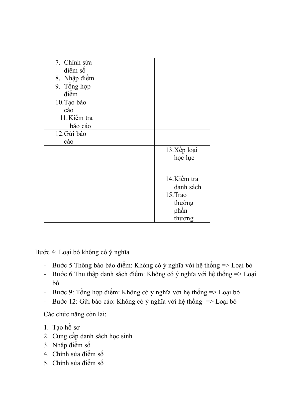 - Bước 6 Thu thập danh sách điểm: Không có ý nghĩa với hệ thống => Loại bỏ