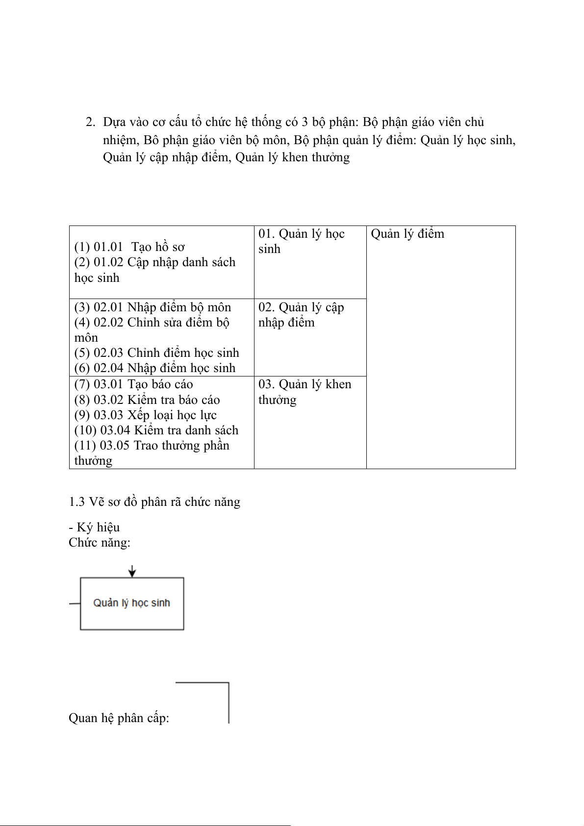 1.3 Vẽ sơ đồ phân rã chức năng - Ký hiệu Chức năng: Quan hệ phân cấp: