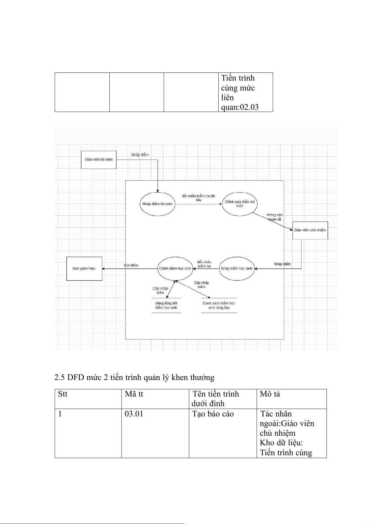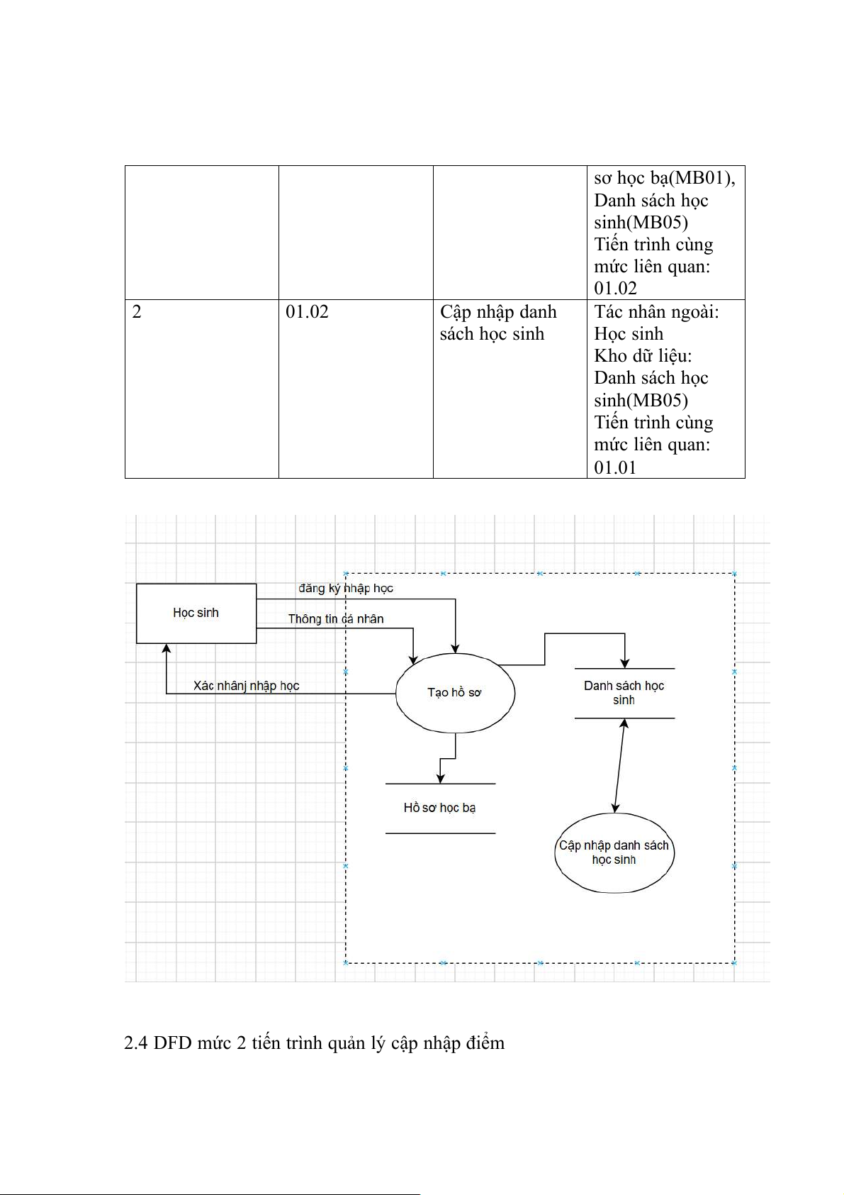 2.4 DFD mức 2 tiến trình quản lý cập nhập điểm STT Mã tt Tên tiến trình Mô tả dưới đỉnh 1 02.01