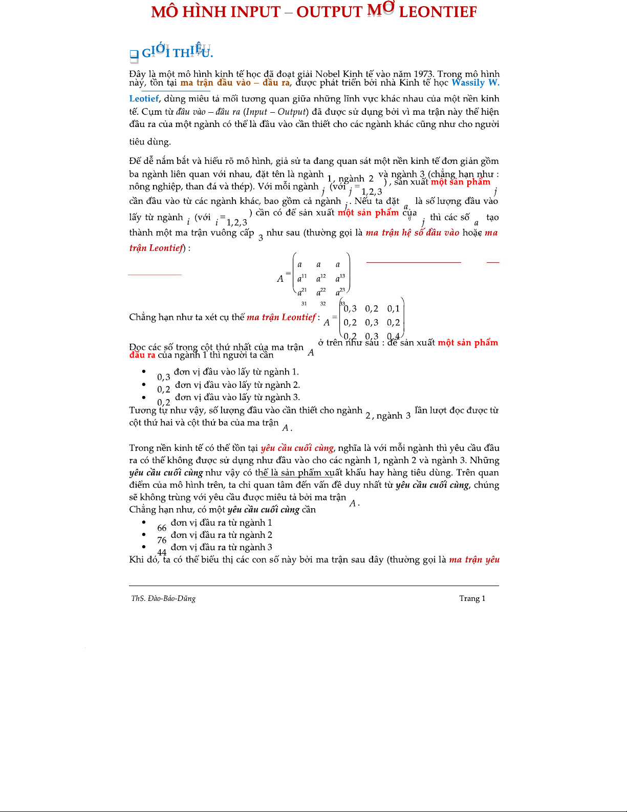 Mô Hình Input-Output Mở Leontief: Phân Tích Kinh Tế Và Ma Trận