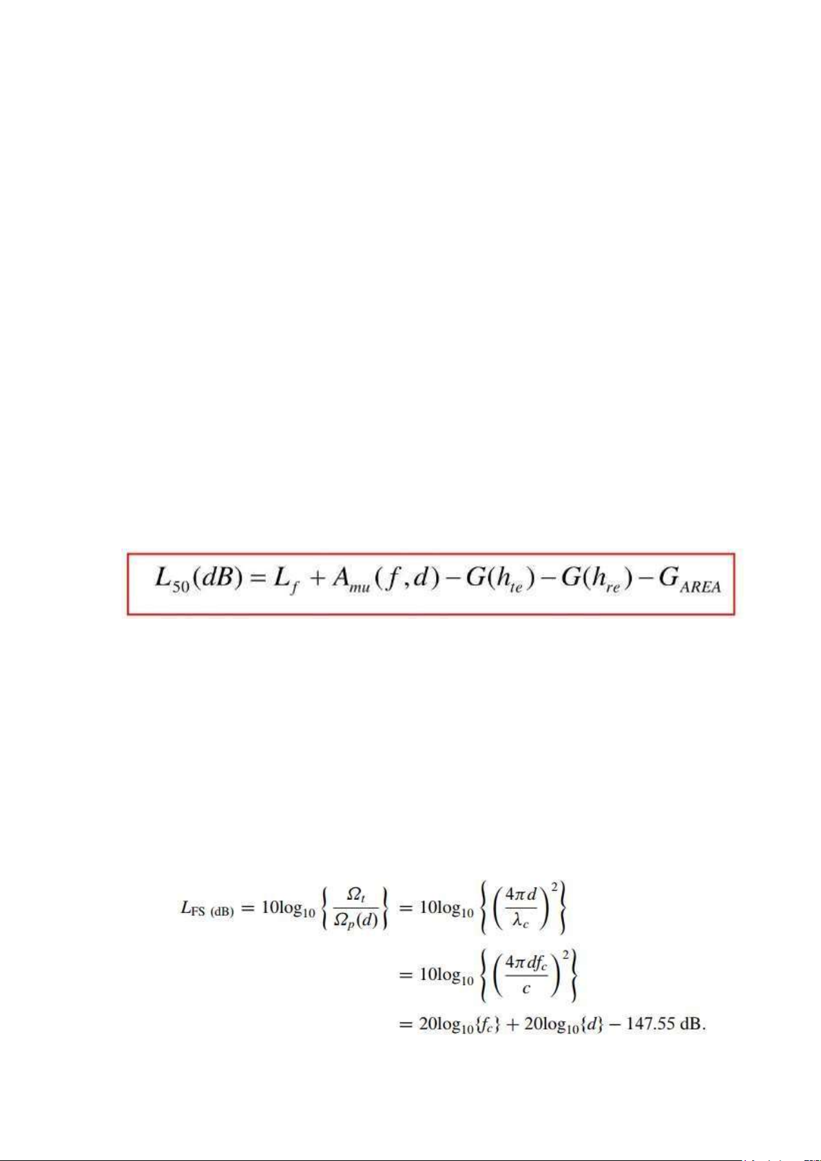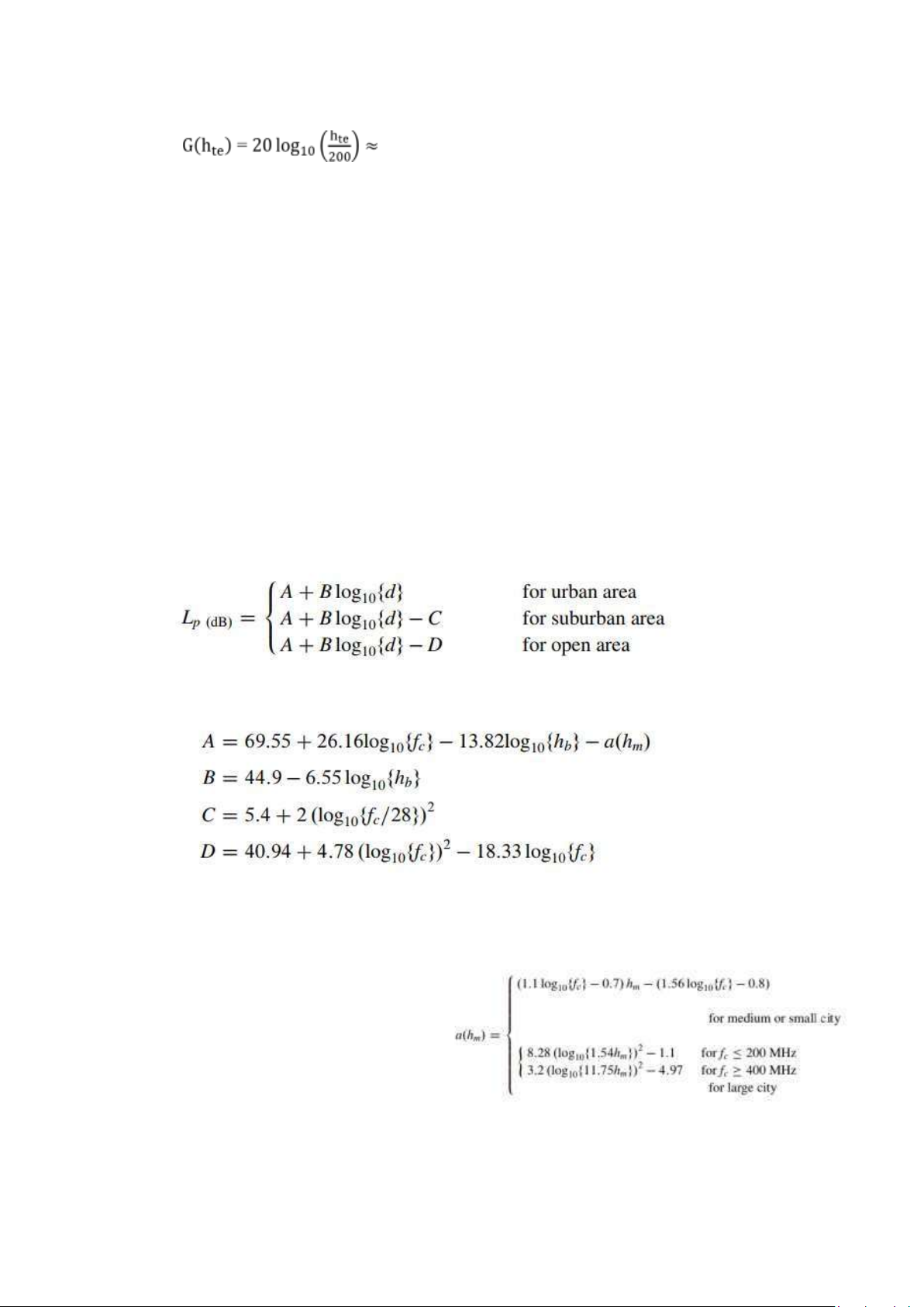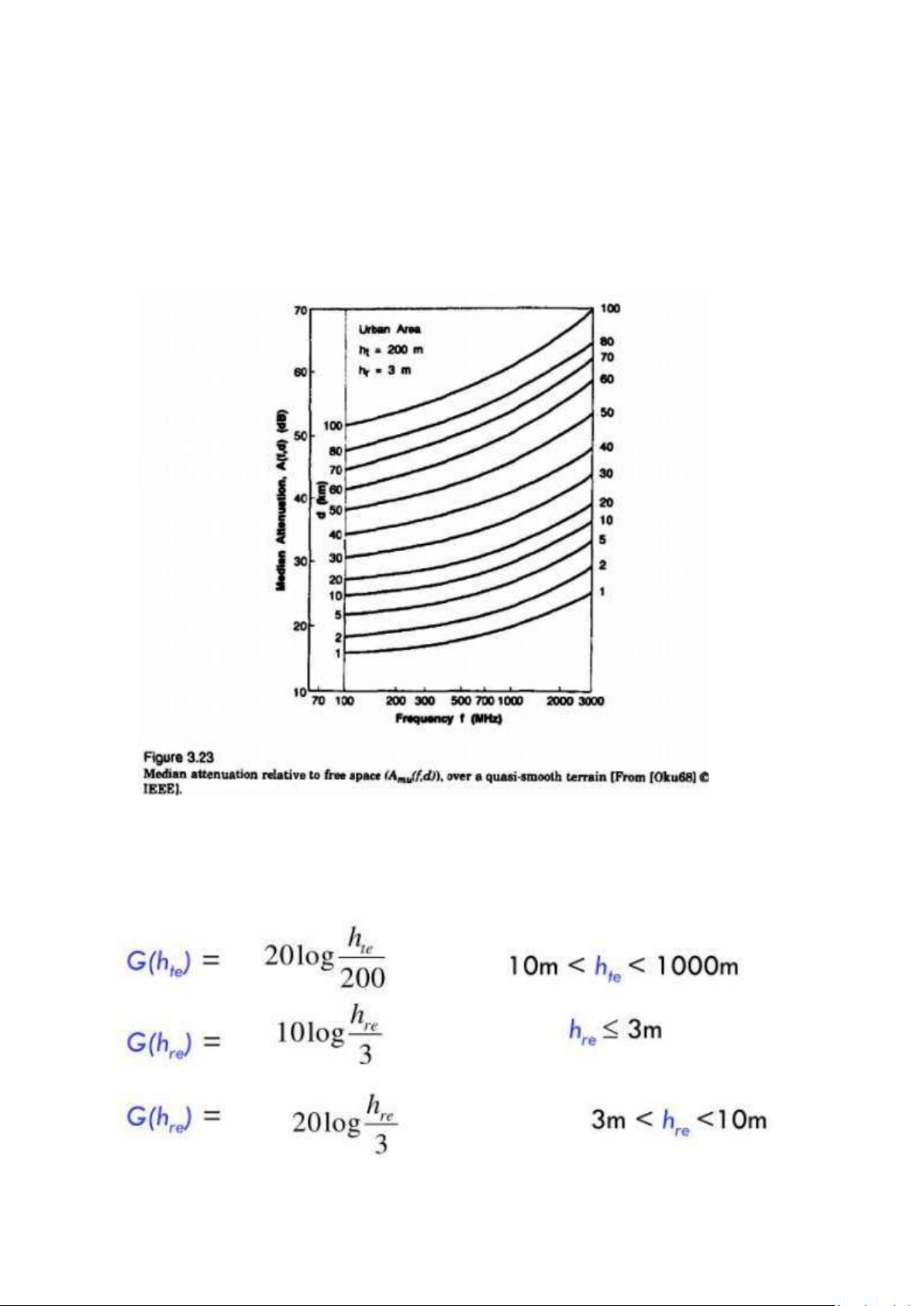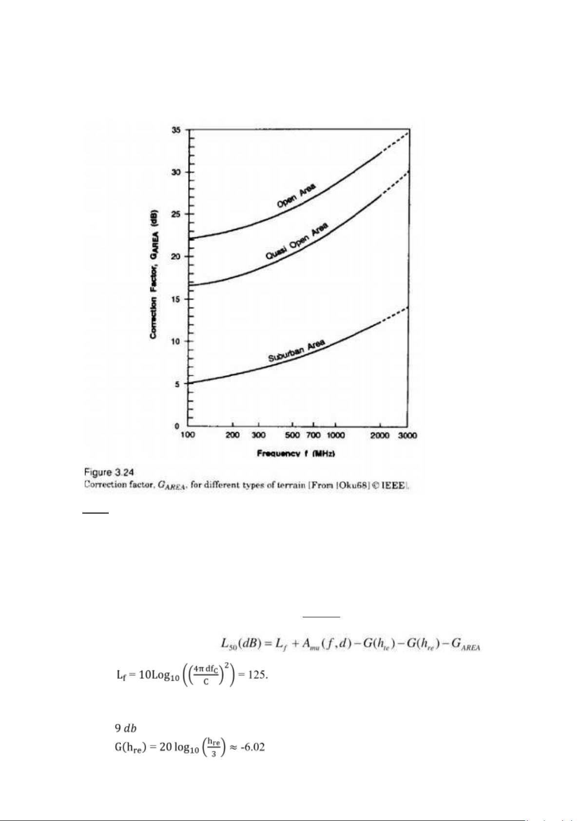số fc = 900 Mhz và d = 50 km ta xác định được Amu(f, d) ≈ 43 𝑑𝑏 và GAREA ≈ db lOMoAR cPSD| 58833082 10.46 db
