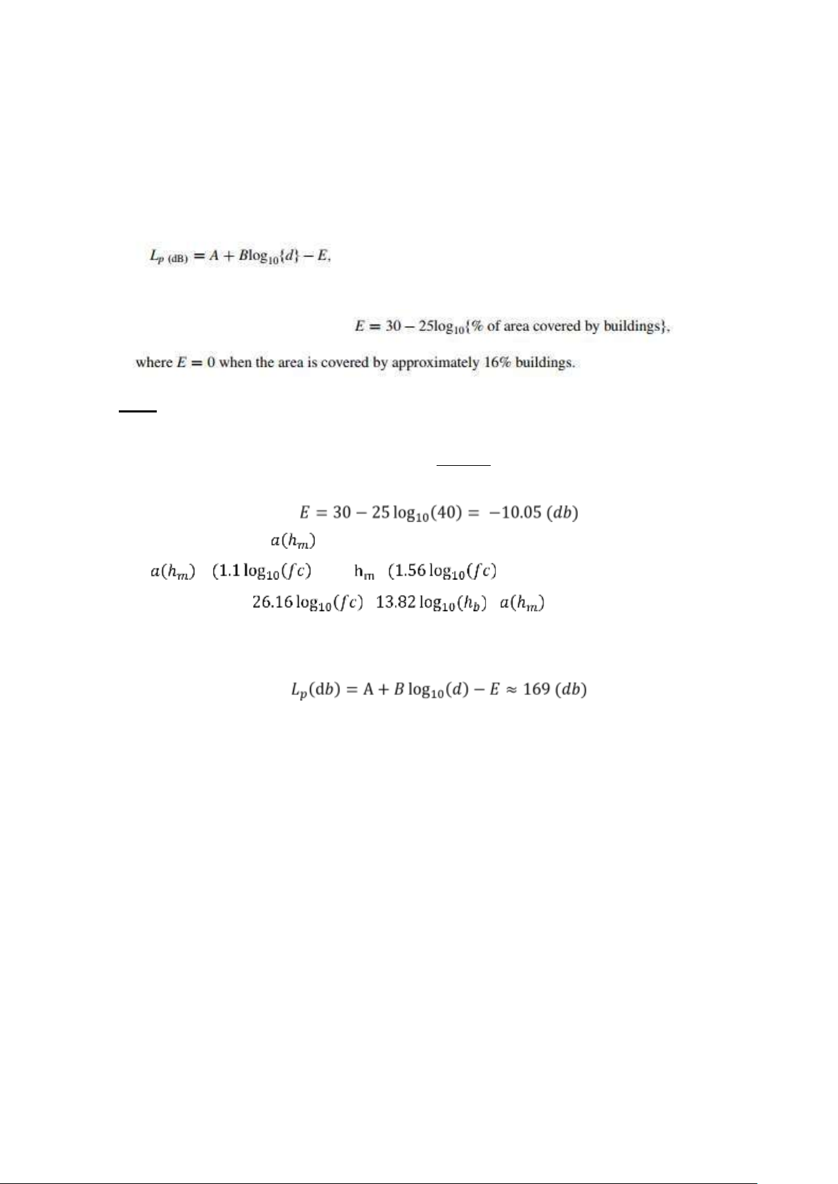 sẽ được tính theo công thức cho thành phố nhỏ và vừa Vậy = – 0.7) - – 0.8) = 3.92 (db) ➢ A = 69.55 + - - = 123.696 (db)