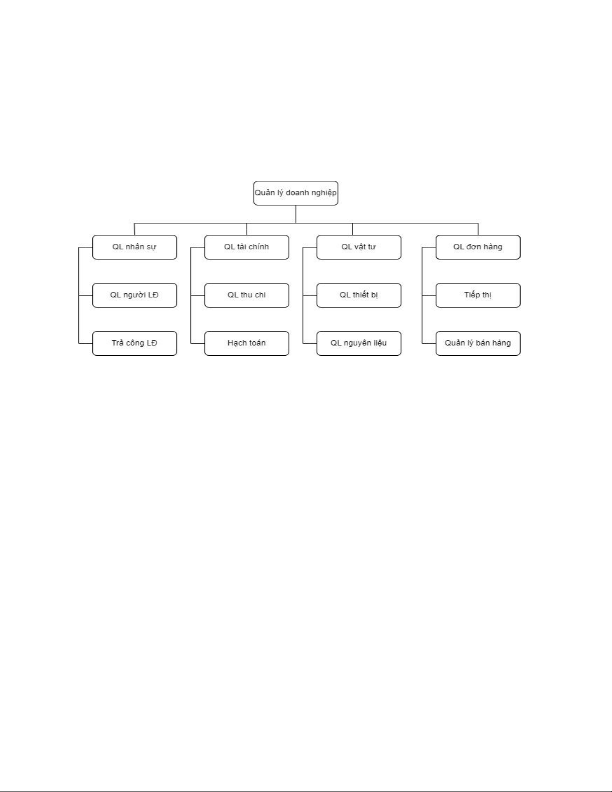 Biểu diễn mối quan hệ phân cấp chức năng như sau: