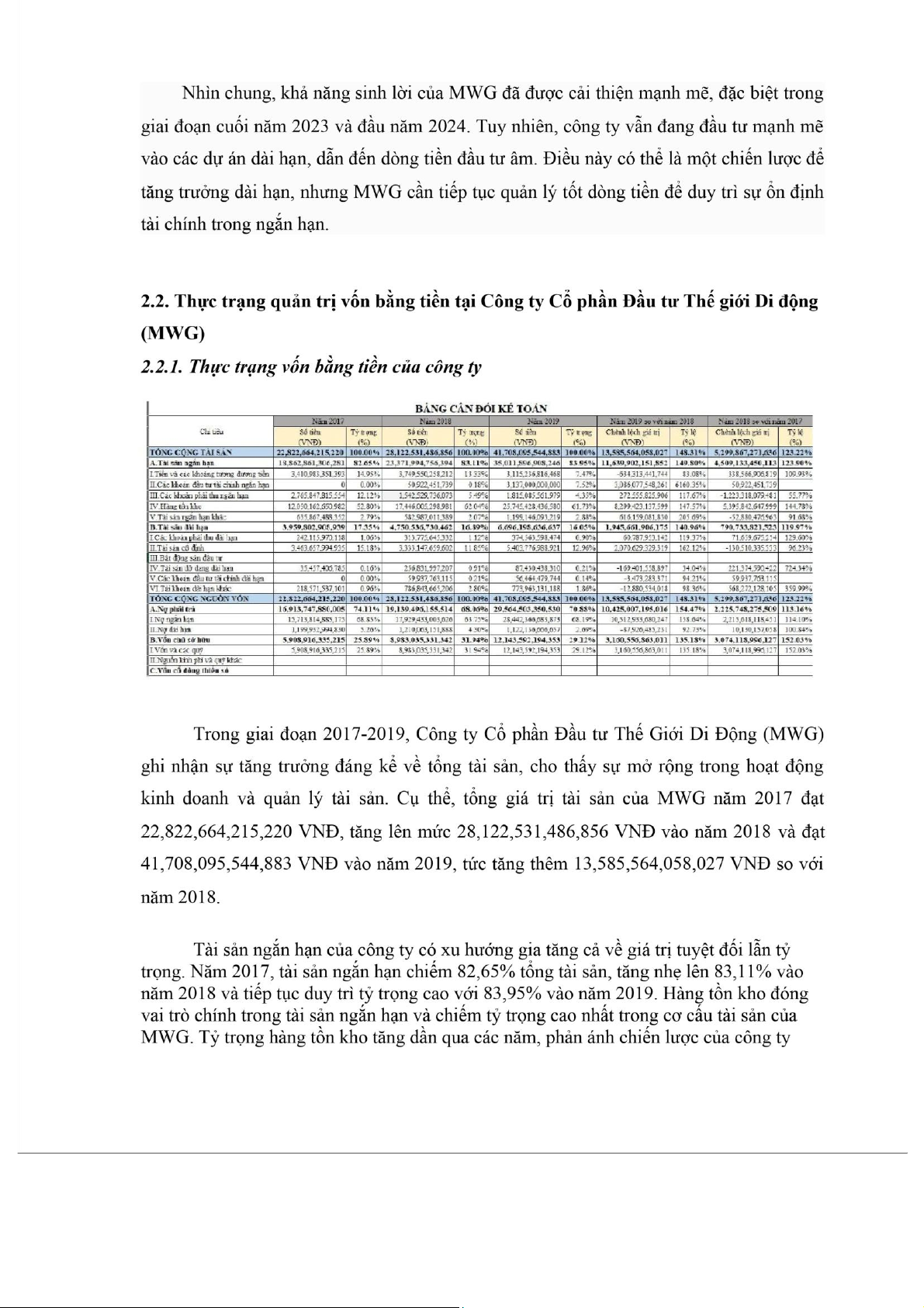 Nhìn chung, cơ cấu tài sản và chiến lược quản lý vốn của MWG có thể đánh giá là