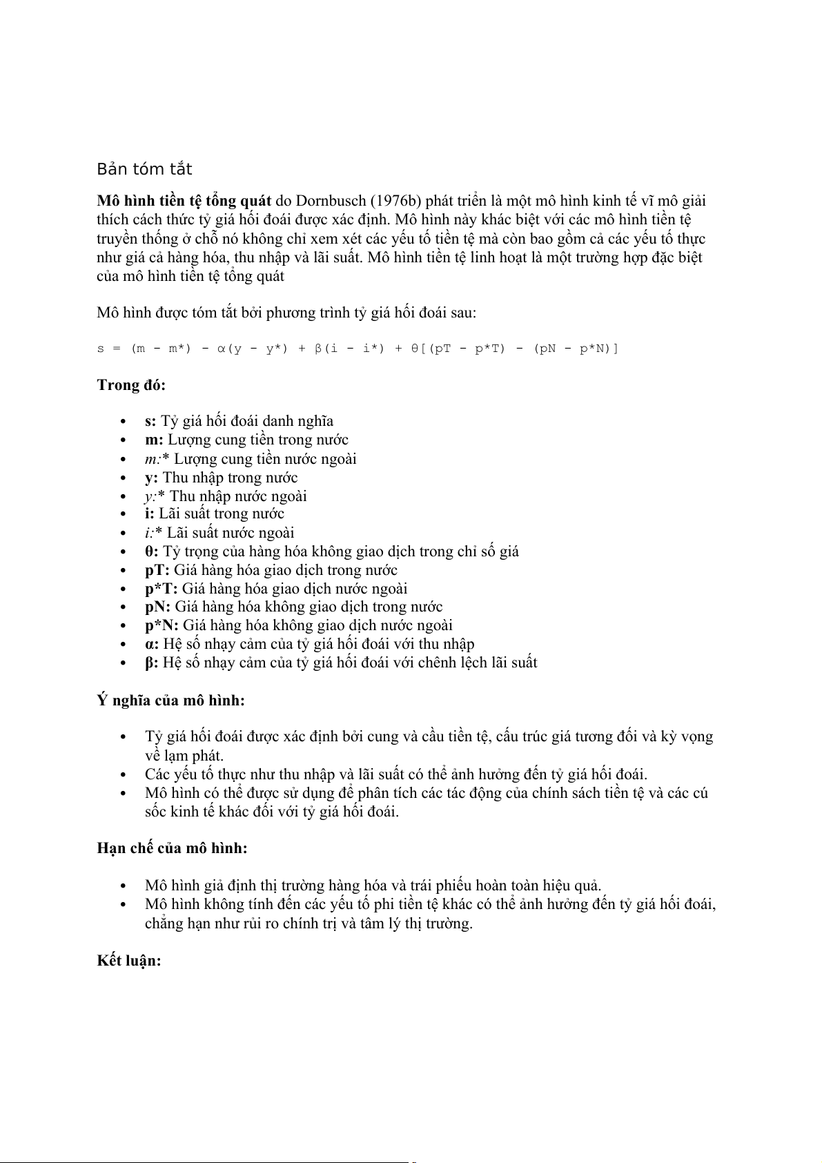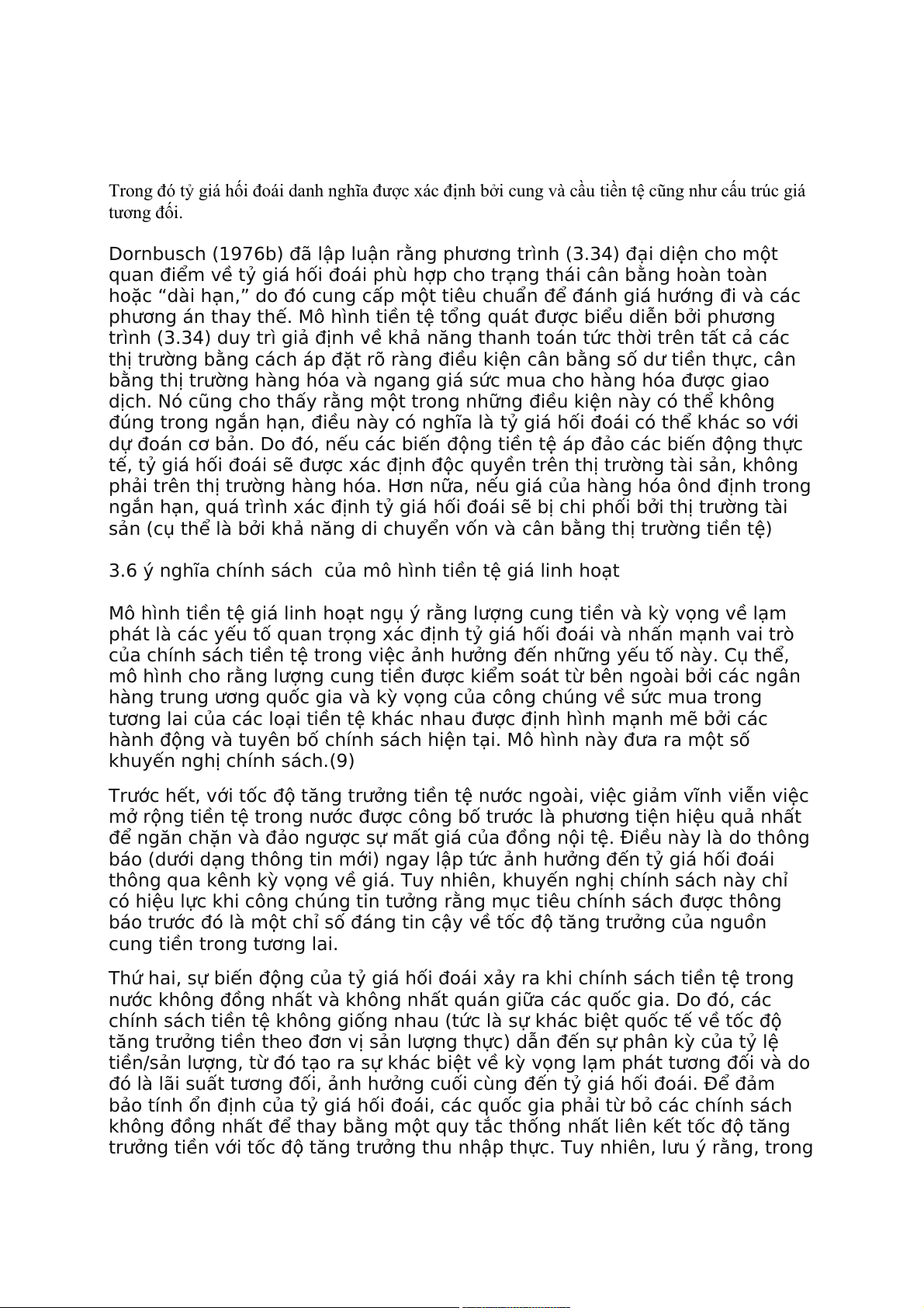 Mô hình tiền tệ tổng quát do Dornbusch (1976b) phát triển là một mô hình kinh tế vĩ mô giải