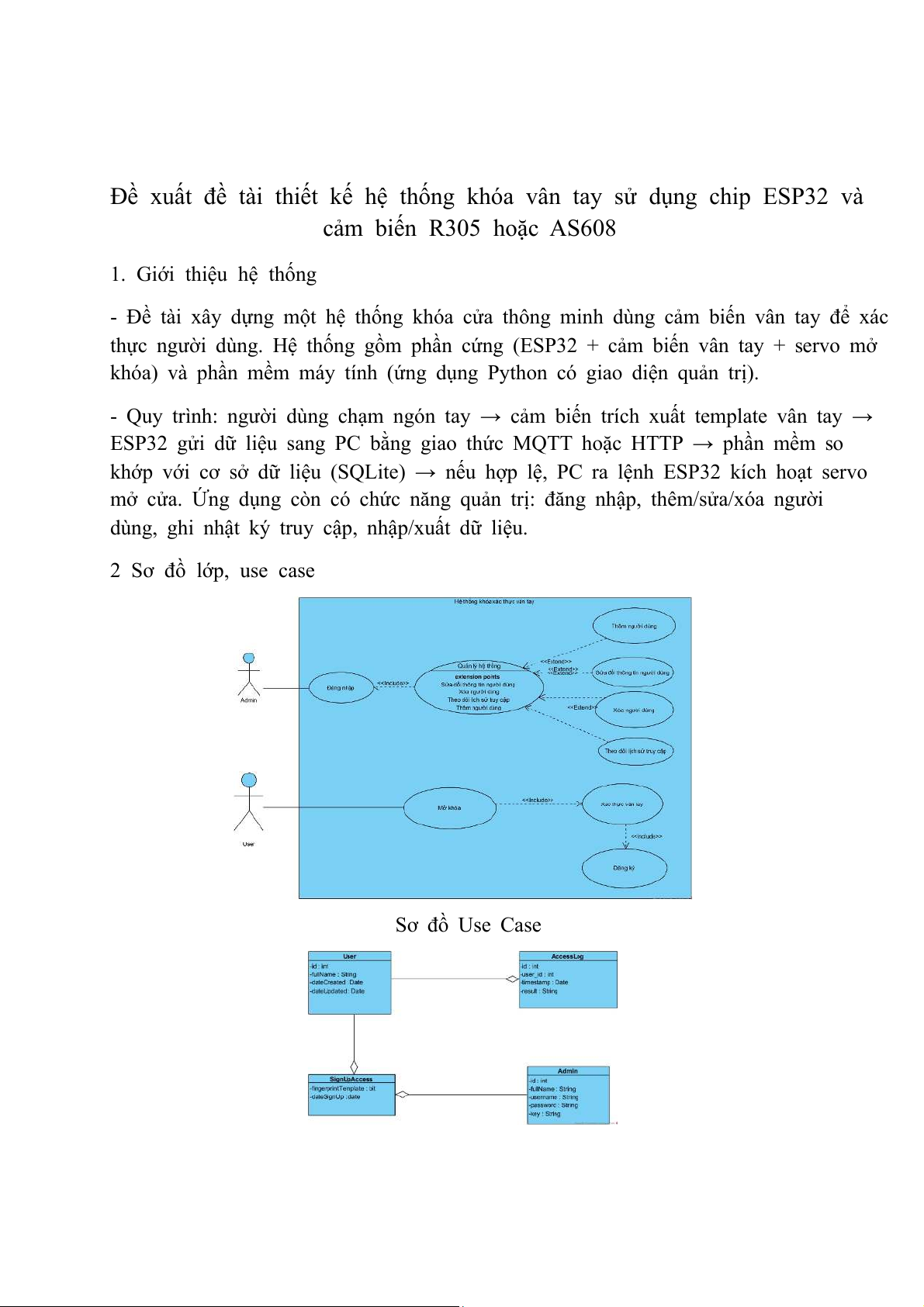 Đề xuất đề tài thiết kế hệ thống khóa vân tay sử dụng chip ESP32 và