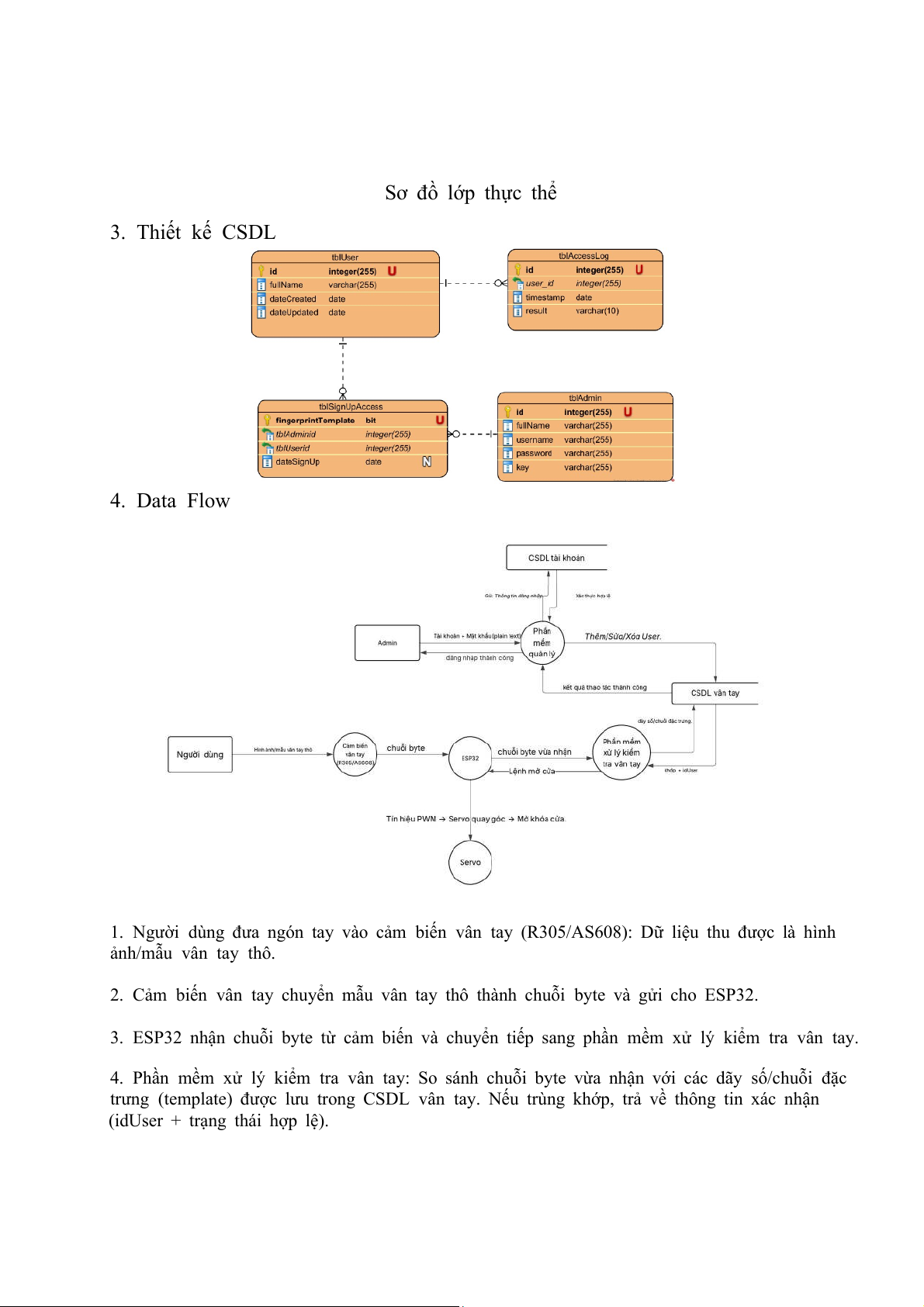 thực người dùng. Hệ thống gồm phần cứng (ESP32 + cảm biến vân tay + servo mở
