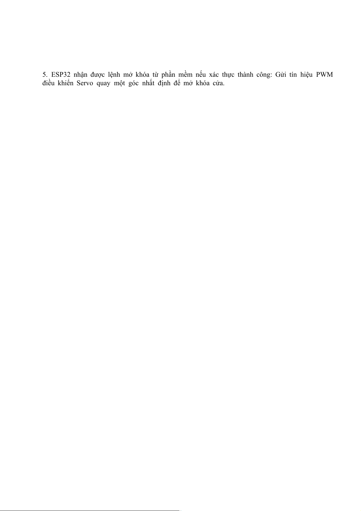 5. ESP32 nhận được lệnh mở khóa từ phần mềm nếu xác thực thành công: Gửi tín hiệu PWM