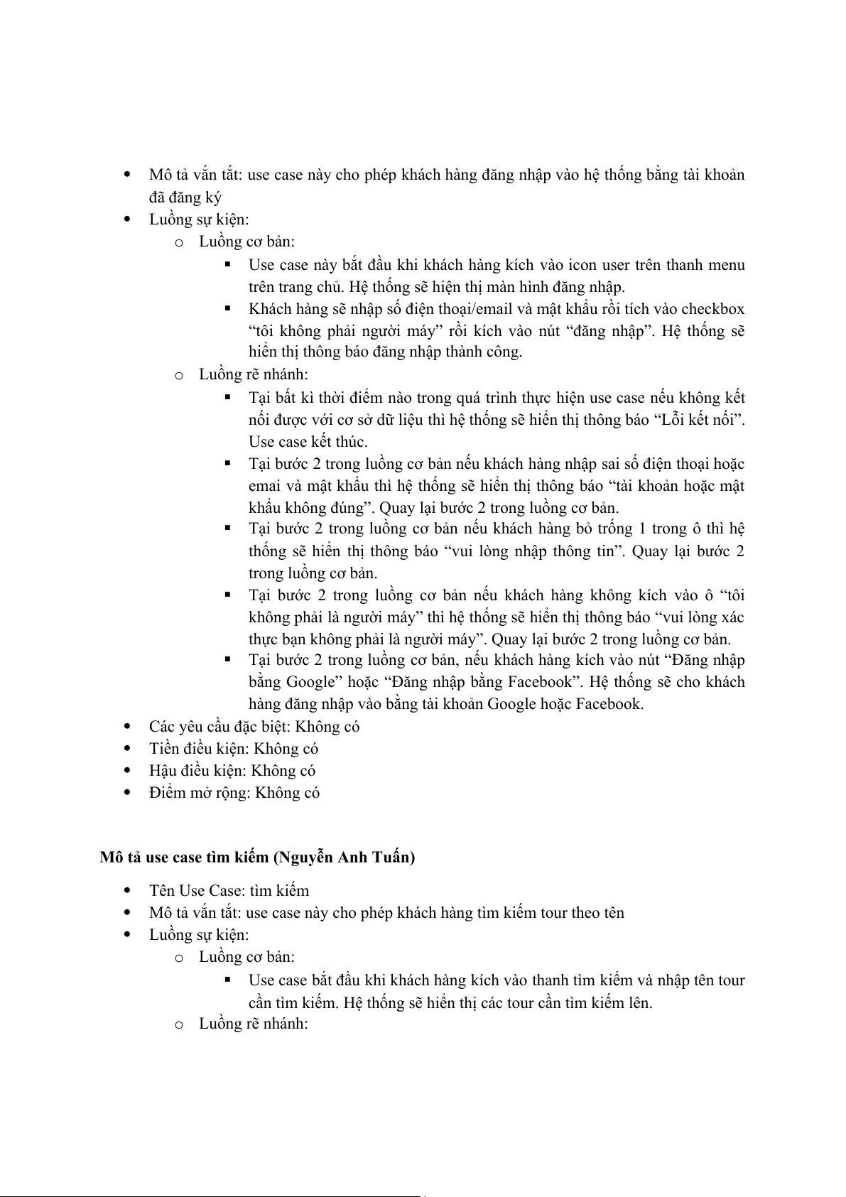 Mô tả vắn tắt: use case này cho phép khách hàng tìm kiếm tour theo tên Luồng sự kiện: o Luồng cơ bản: