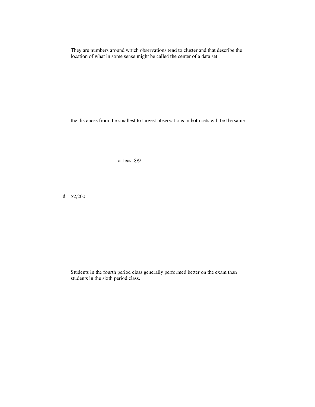 ____ 5. An exam is given to both the fourth period class and the sixth period class. If a student's score is at